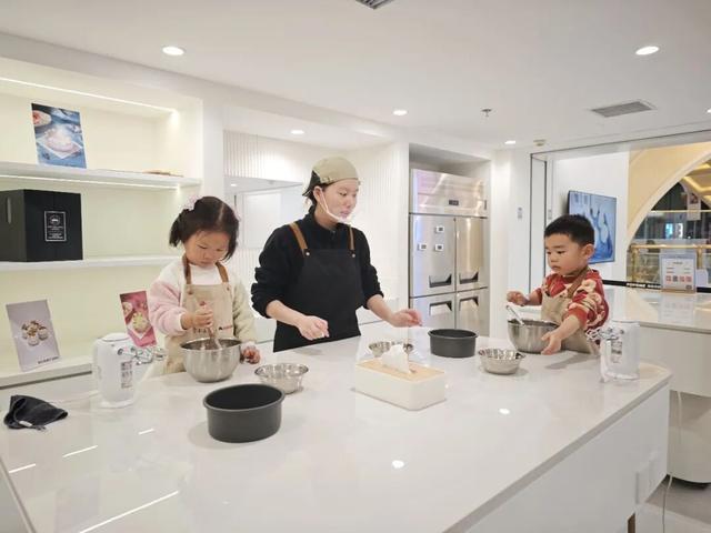 在乐园的一角,最新推出的烘焙工坊正式上线。两组预约家庭的小朋友在专业烘焙师的悉心指导下,开启了一场奇妙的蛋糕制作之旅。从称量面粉、搅拌蛋液到裱花装饰,小朋友们全程参与操作,认真制作着各类蛋糕坯子。