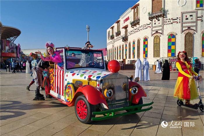简报会在迪拜全球村举行,这是全球村的小丑演员在会前暖场。人民网记者 管克江摄