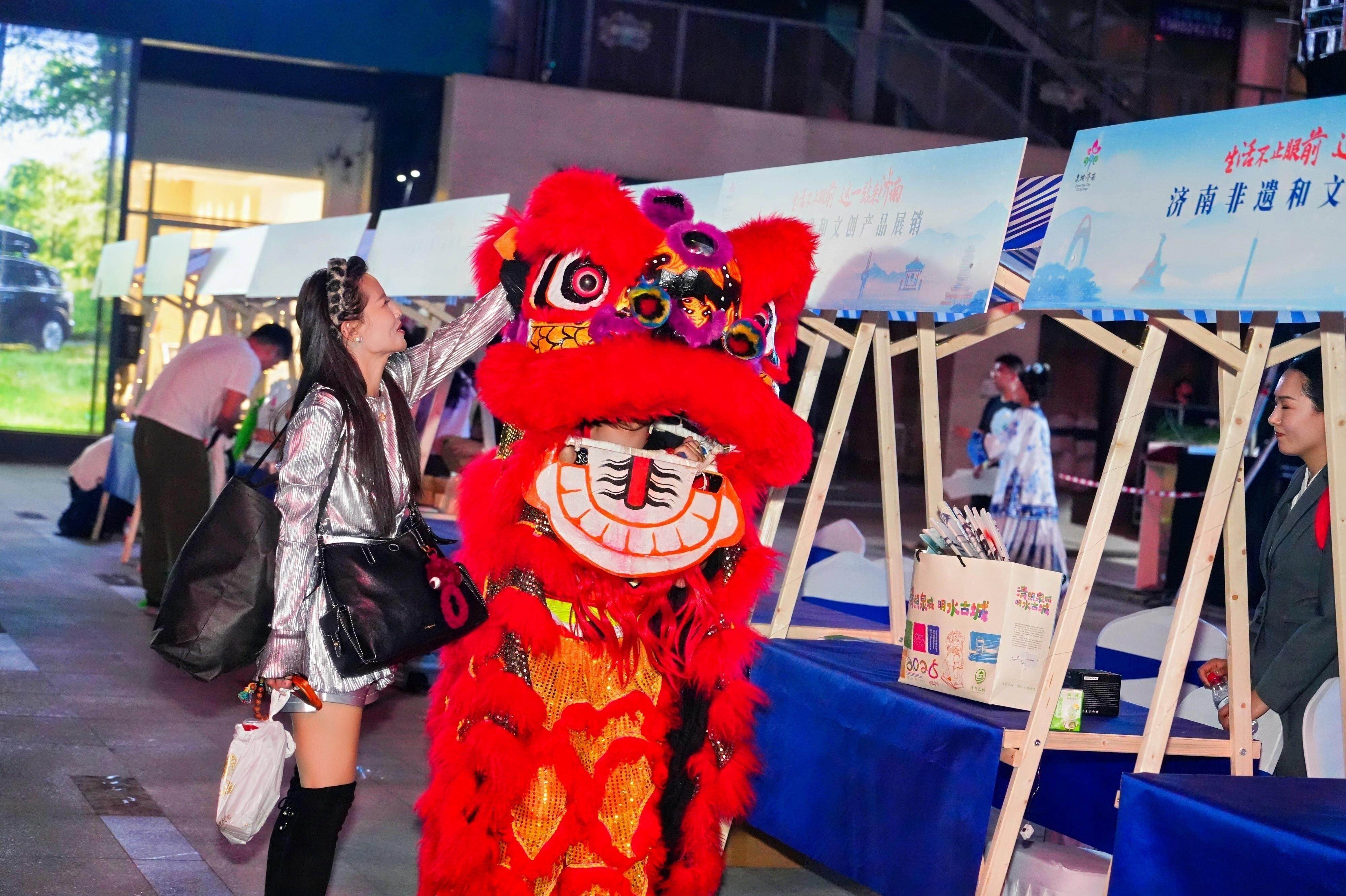 活动现场特设“非遗文创市集”,彩塑鼓子秧歌玩偶、李清照形象冰箱贴、泉城兔子王、南山文砚等展品琳琅满目;玫瑰鲜花饼、把子肉等特色美食飘香四溢,让广州市民在烟火气中触摸济南千年文脉。