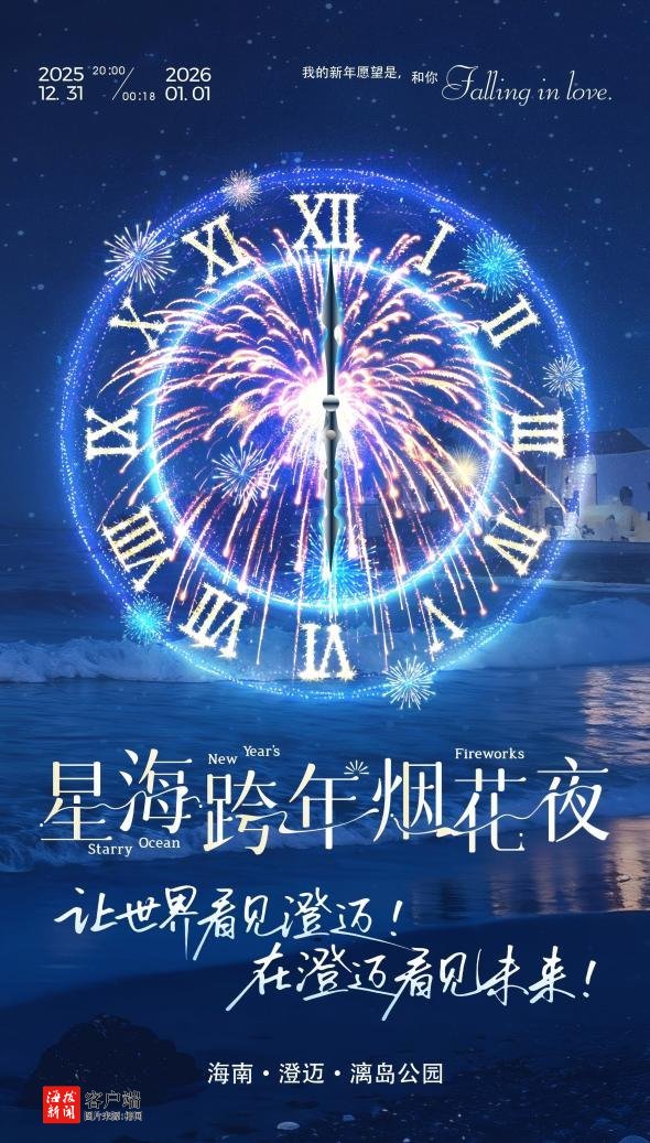 商报全媒体讯(椰网/海拔新闻记者 唐伟杰)当自贸港的海风邂逅跨年的星光,一场震撼人心的视听盛宴即将在澄迈启幕!2025年12月31日20:00至2026年1月1日00:18,“星海跨年烟花夜”将在澄迈漓岛公园盛大举办,以“烟花游乐园”为核心定位,用艺术、科技与自然的碰撞,为自贸港献上跨年厚礼,也为市民游客解锁海岛跨年新方式。