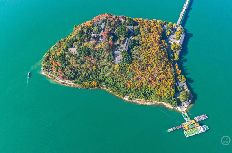12月14日,重庆市奉节县,冬日的白帝城·瞿塘峡景区层林尽染,构成一幅壮美的山水生态画卷,美不胜收。