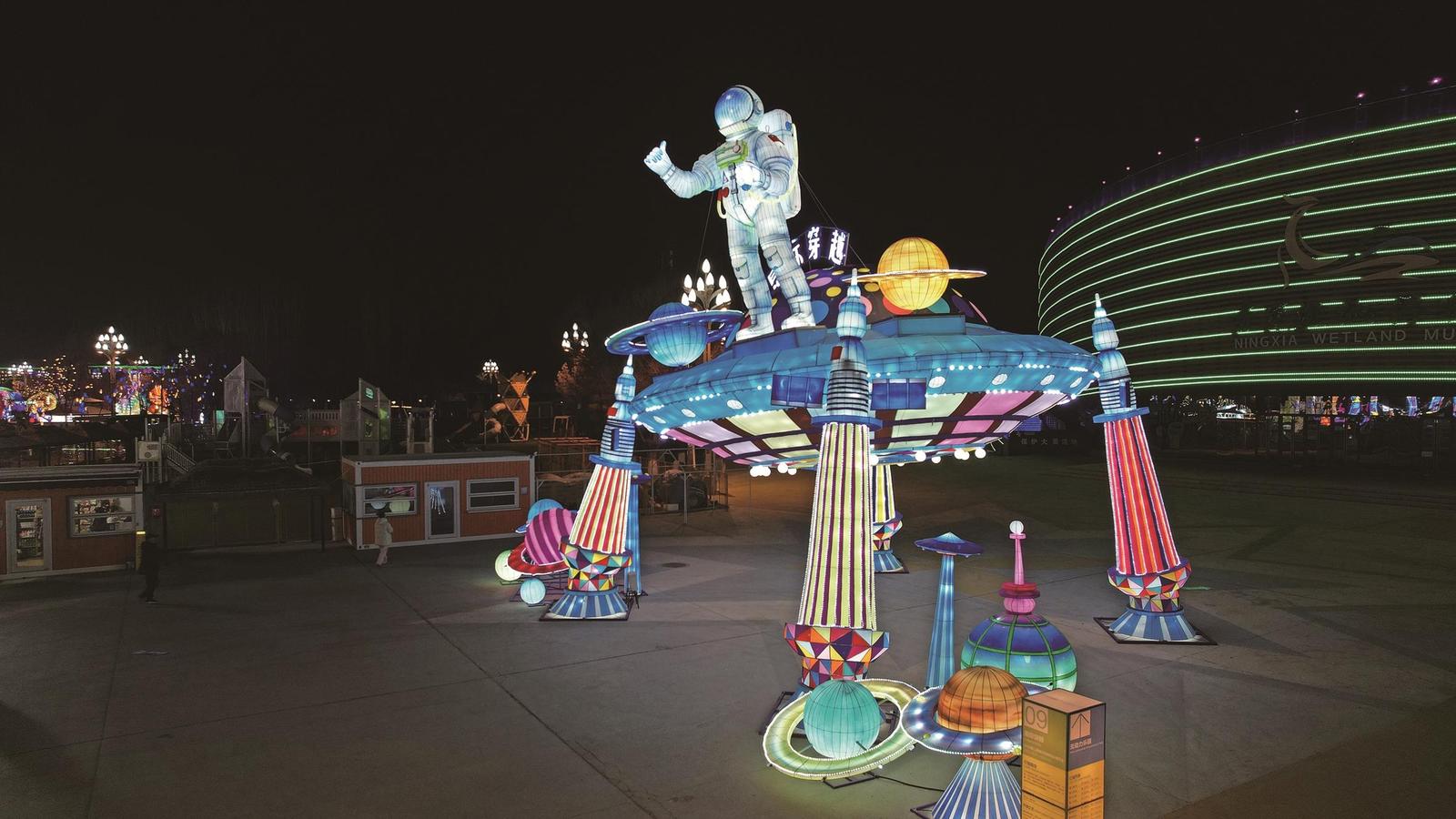 本届灯会由银川城市发展投资集团有限公司主办,宁夏安徽商会、成都华亿彩灯艺术有限公司、银川市城投运营管理有限公司承办,在规模、内容与服务方面全面升级。园区内精心规划“一环、四区、三点”游览动线,打造长达2.5公里的梦幻灯廊。百余组大型主题灯组沿主环道错落分布,涵盖“星际银河”“东方神话”“山海传奇”“玩转花博”“寻梦·十二时辰”五大篇章,既延续《山海经》神话体系的文化内核,又巧妙融合数字光影、智能交互等前沿科技,让传统灯会焕发全新活力。
