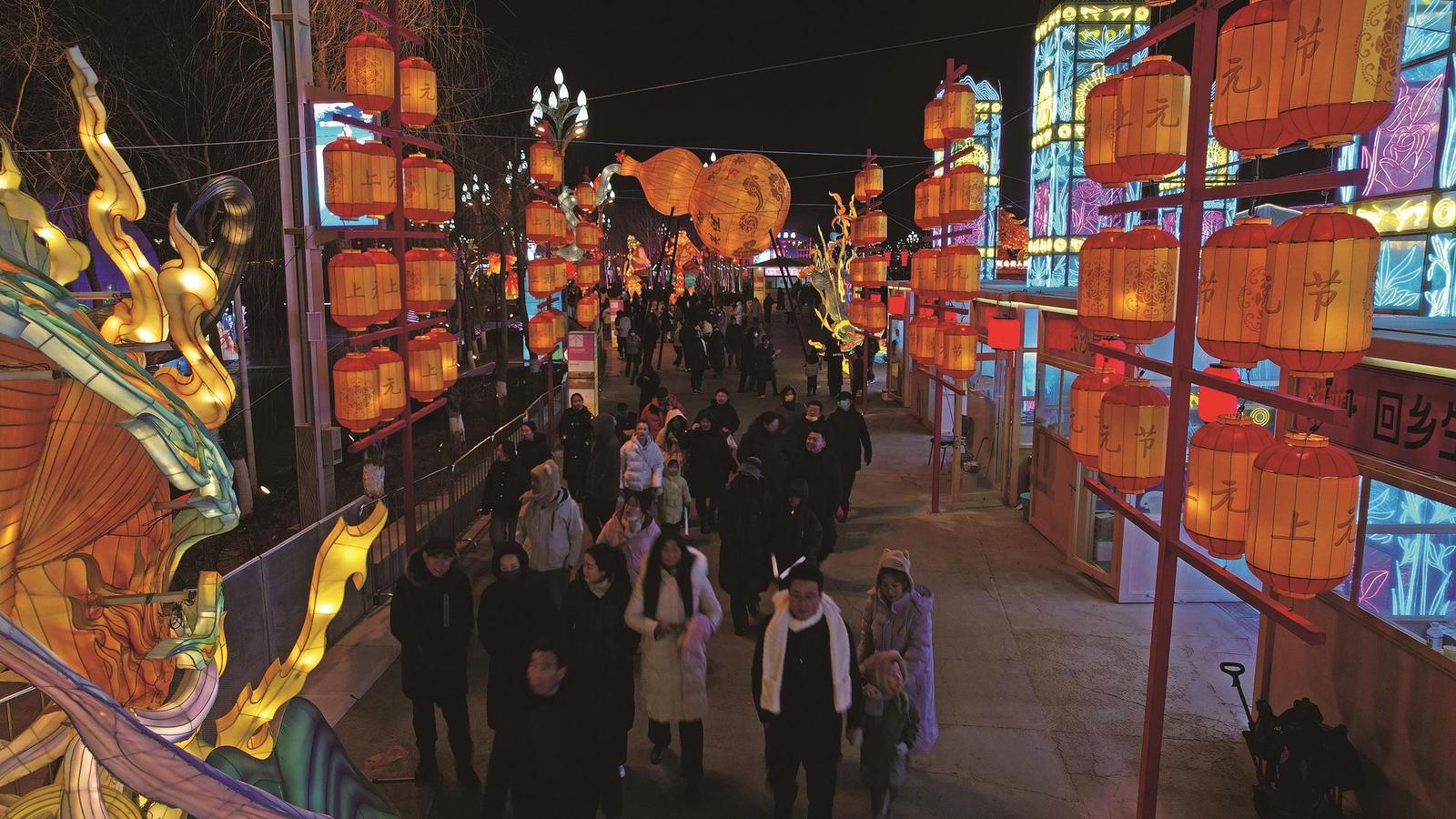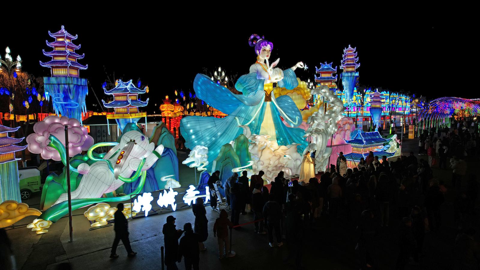 科技赋能是本届灯会的另一大特色。高达13米的“天马腾霄”灯组气势恢宏,6米长的机甲麒麟动态演绎神话生物,无人机编队组成的天幕秀更将夜空化为流动画卷。同时,灯会创新推出《十二时辰剧本杀》情景互动剧,持票游客可免费参与,在解谜探秘中深度体验传统文化魅力。