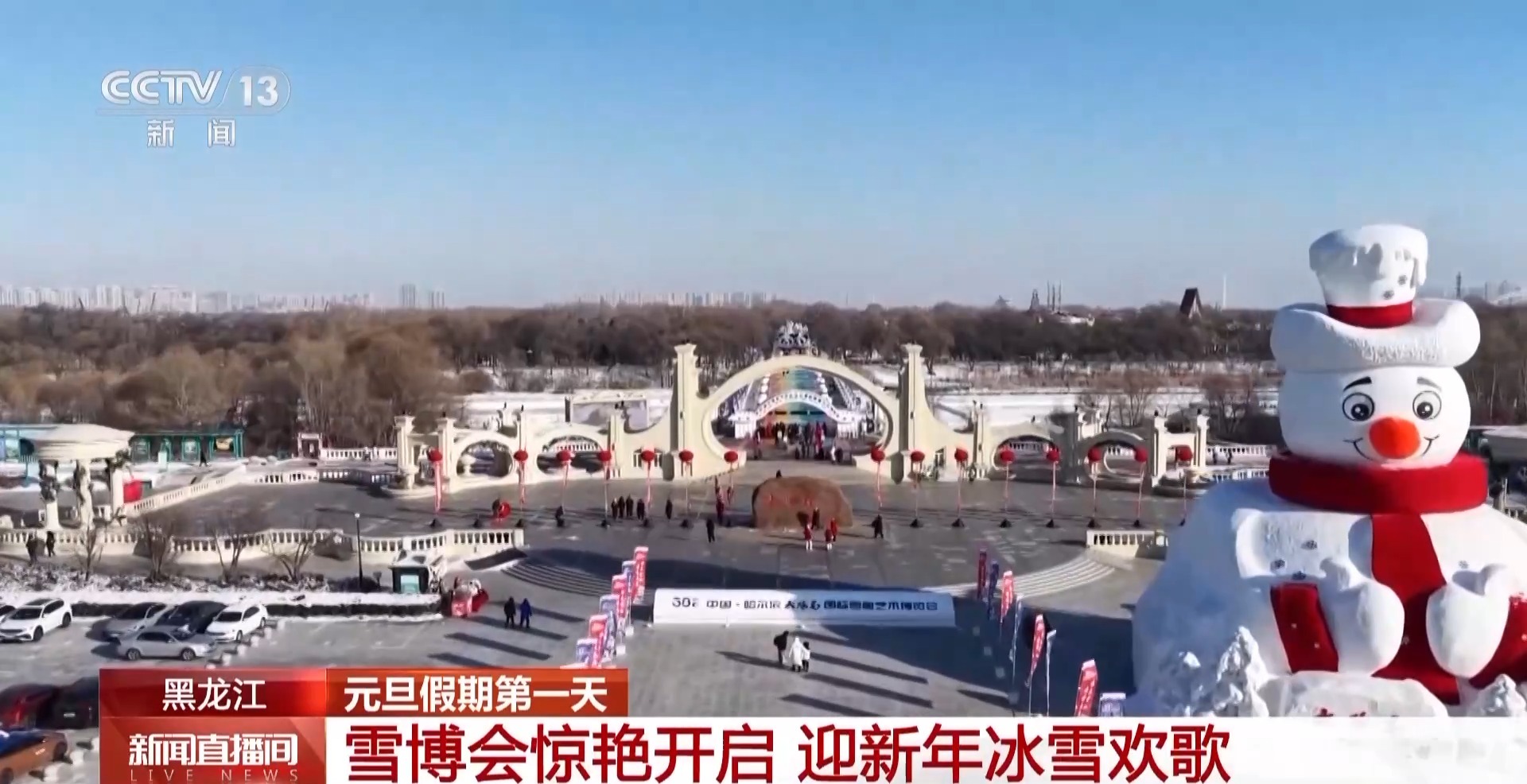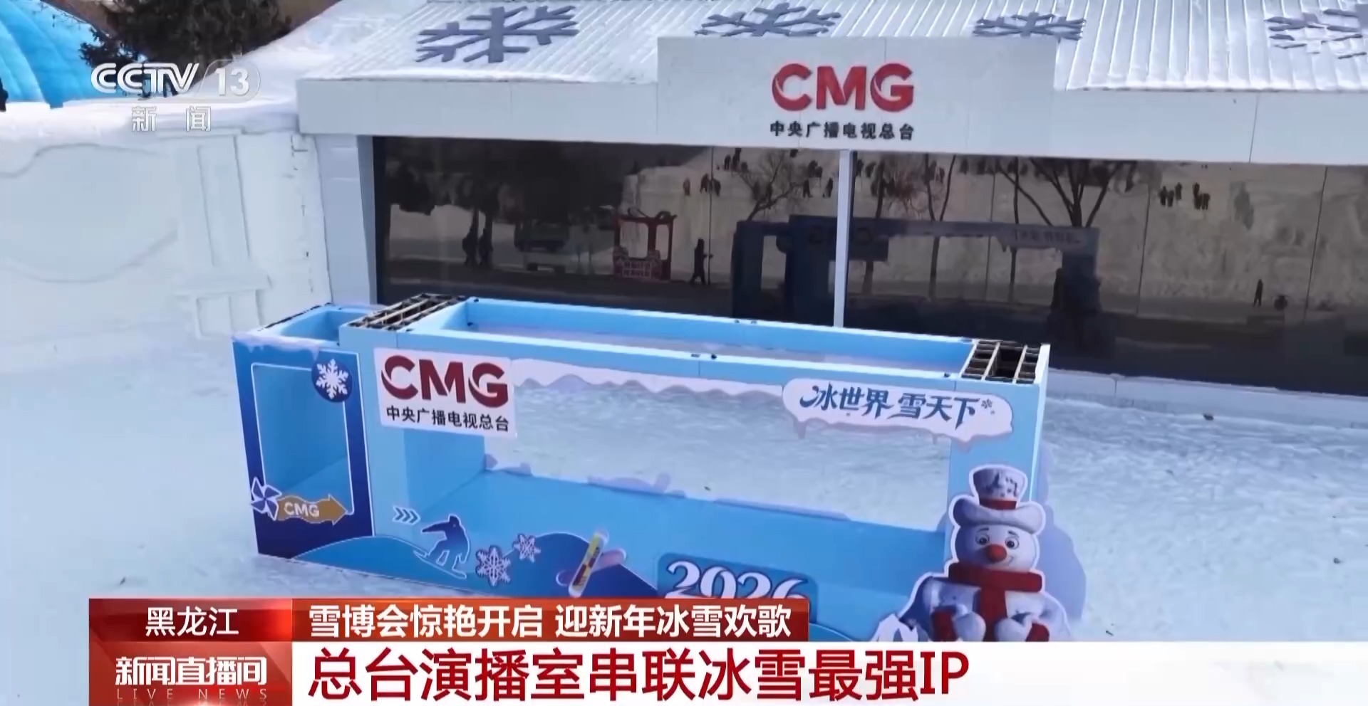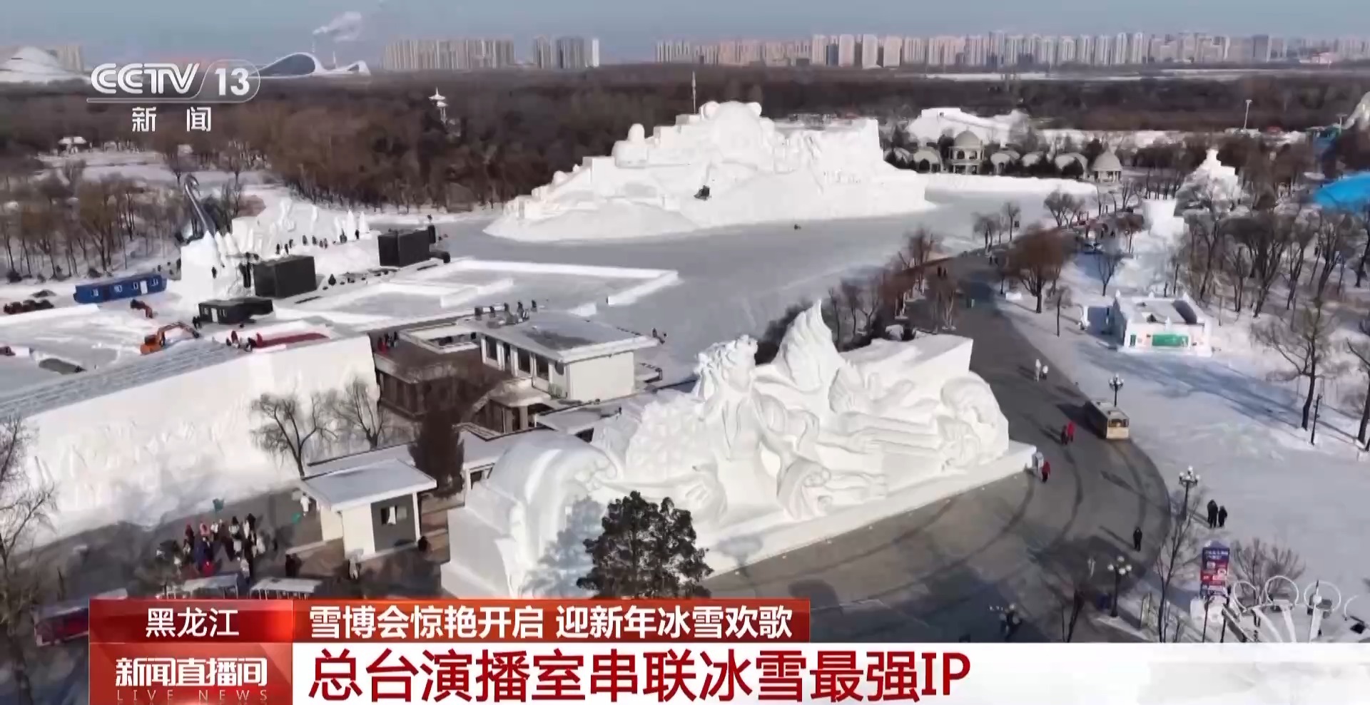 总台记者 王海樵:欢迎大家在2026年的第一天,来到第38届哈尔滨太阳岛国际雪雕艺术博览会的现场。在昨天,太阳岛雪博会正式的开门迎客了。今天我们在园区内也看到游客的数量是非常的多,大家纷纷怀揣着对新年的期许来到这一片冰天雪地里,准备开始新年的第一游。总台演播室串联冰雪最强IP