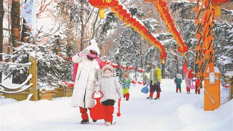 亲子家庭在伊春赏冰玩雪。图片由受访单位提供
