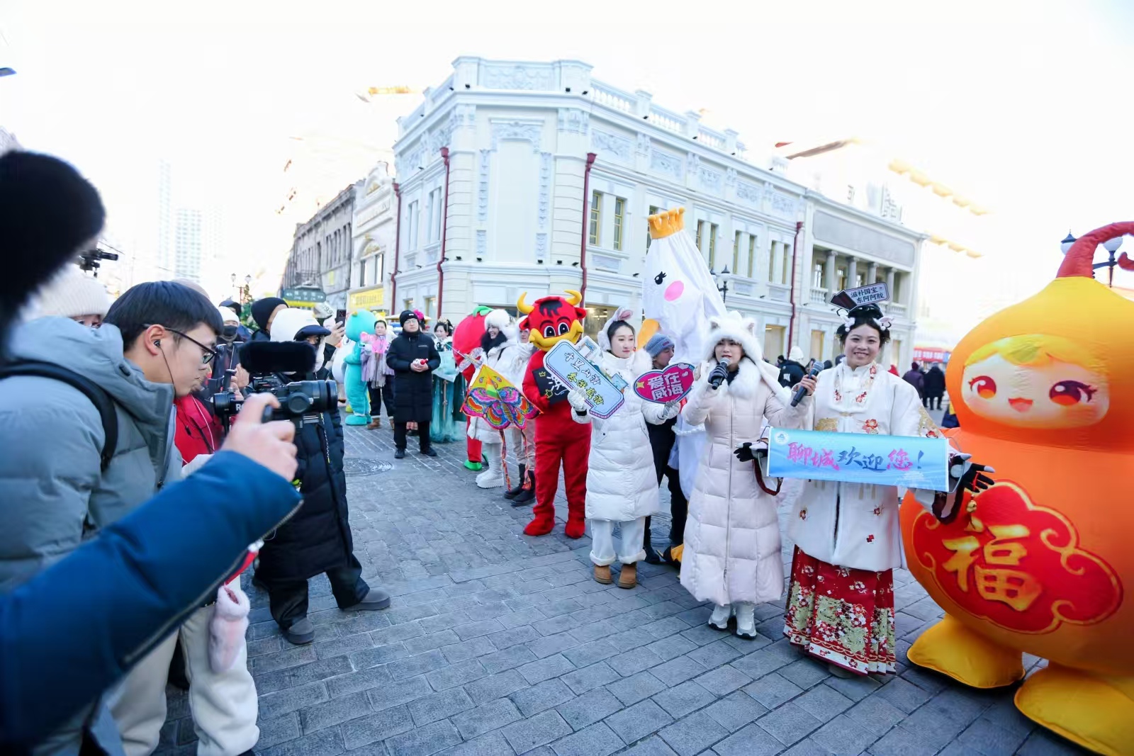 “天下相亲与相爱,动身千里外,心自成一脉……”1月5日,悠扬的旋律在哈尔滨中华巴洛克历史文化保护街区响起,“山东文旅天团尔滨走亲戚”快闪巡游在哈尔滨巴洛克风情街上演。来自山东16市的代表性符号卡通玩偶组成的“文旅天团” 惊喜亮相,为冰城百姓和各地游客送上了来自齐鲁大地的冬日暖意。