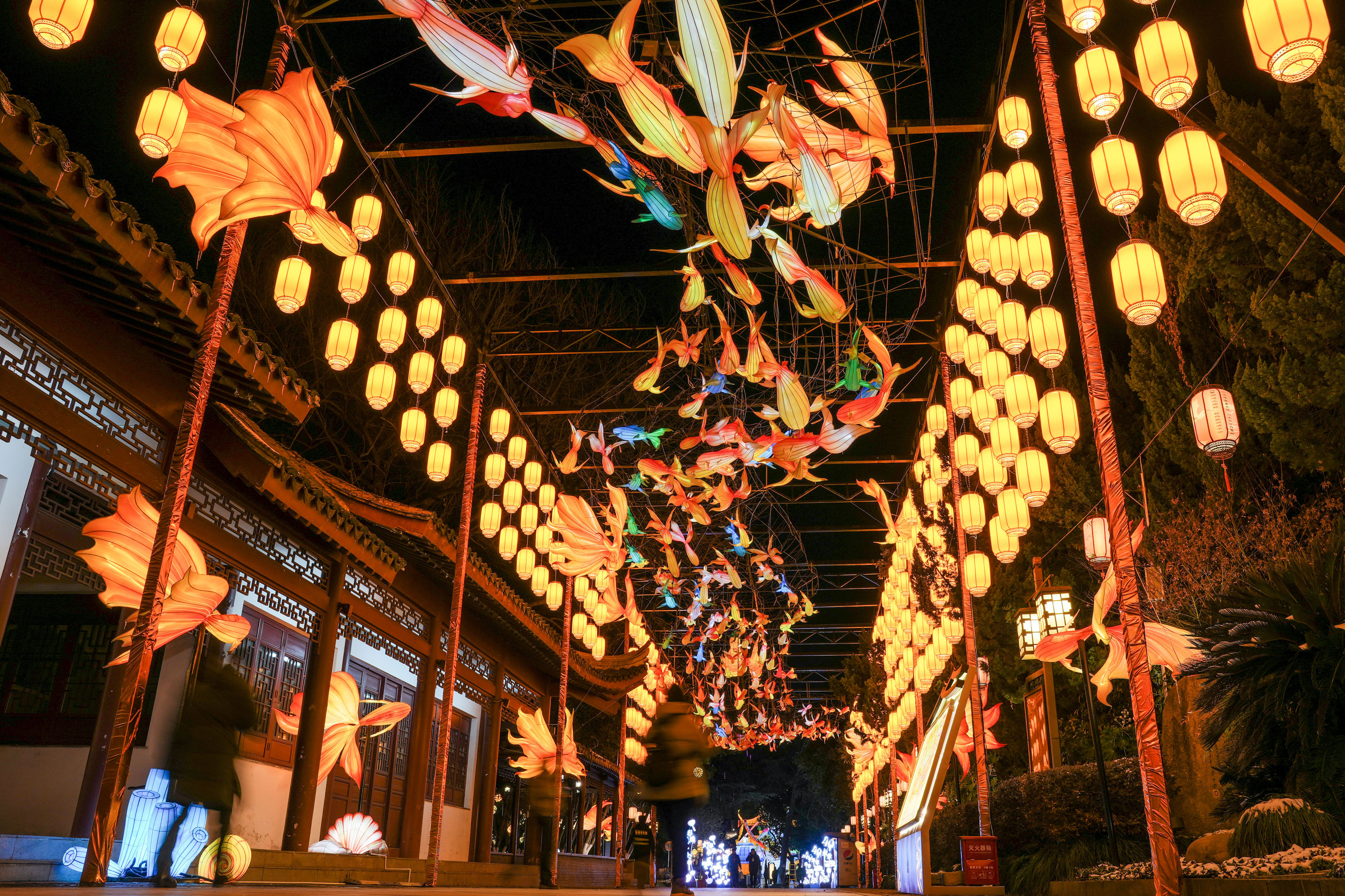 1月21日晚,第40届秦淮灯会在江苏省南京市白鹭洲公园举行亮灯仪式。本届灯会共设有夫子庙核心区、白鹭洲公园、南部新城等展区。夜空下,灯会展区花灯璀璨、流光溢彩,为观众送上视觉盛宴。