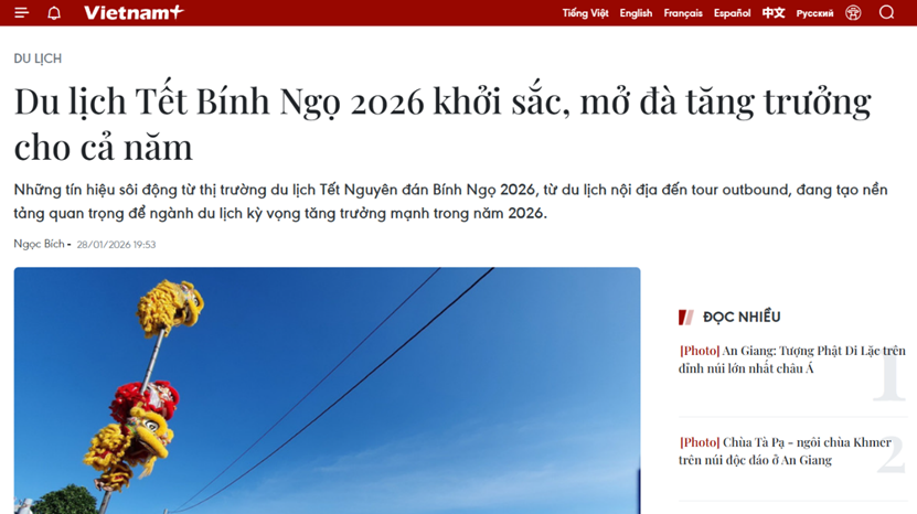 越南通讯社近日发文称,由于提前公布了连续9天的假期,2026年乙午春节为旅游市场带来了显著的“推动力”。2026年春节旅游市场的活跃反映了人们对年末休整和体验日益明显的需求,这一迹象表明公众对经济前景的信心正在增强,同时也为旅游业新年伊始的复苏和长期增长打下了坚实的基础。