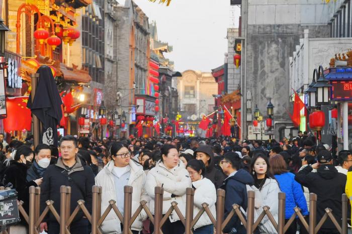 2026年2月19日(农历正月初三),北京前门大街迎来春节假期客流高峰,预计日均客流量将突破10万人次,成为京城年味最浓的打卡地之一。