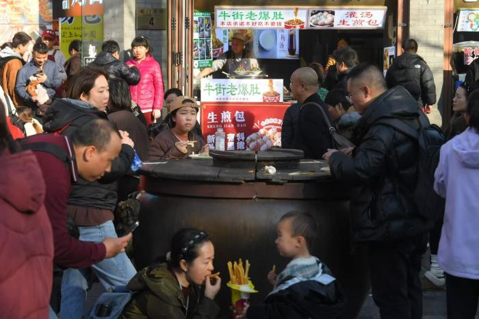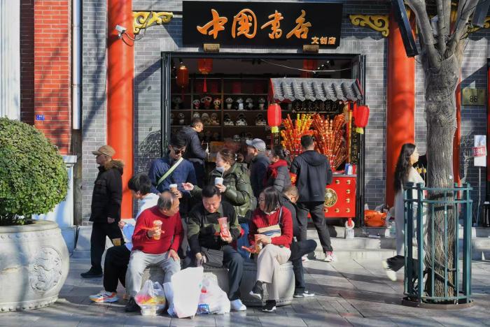 青石板路上人头攒动,老字号与非遗市集交织,呈现出“日间赏景、夜间游园”的热闹图景。