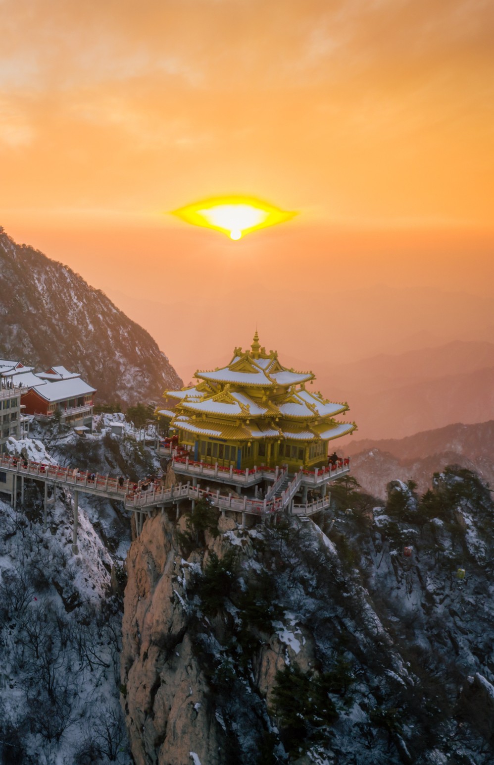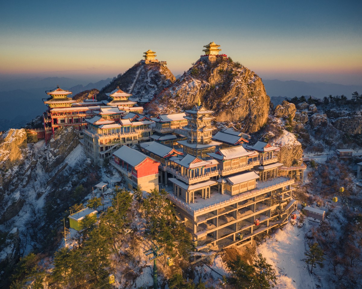 河南老君山,素有“天下无双圣境,世界第一仙山”美誉,传说为太上老君飞升之地。雪后初晴,蓝天映白雪,雾凇伴金殿,天梯蜿蜒入云端,行走其间,仿佛误入《西游记》中的凌霄宝殿,仙气扑面而来。