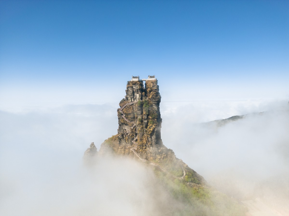 贵州梵净山作为世界自然遗产,是漂浮在云海之上的梵天净土。海拔2336米的山巅,寺庙殿宇在云雾中若隐若现,云蒸雾绕间佛光漫天,遗世独立不染尘埃,被誉为被玉帝遗忘的人间仙山。