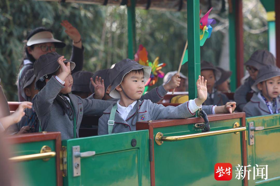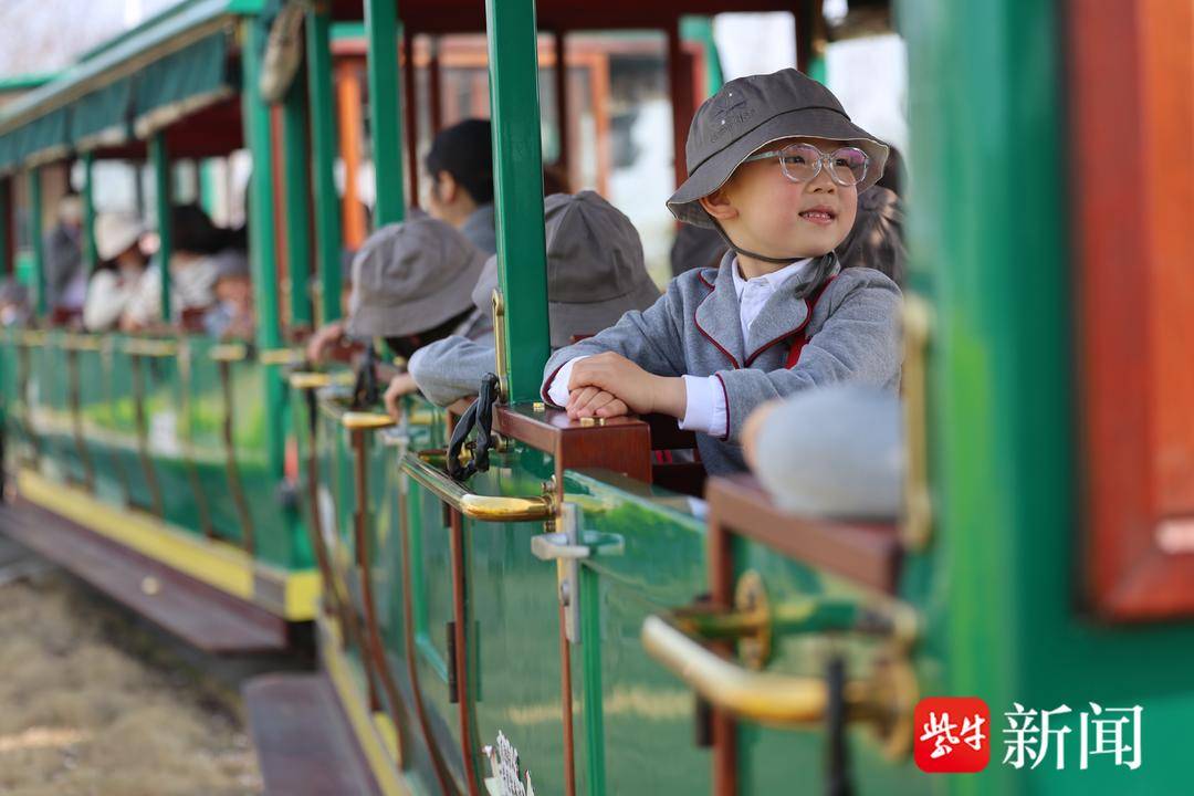 上午10点,孩子们来到常北社区,坐小火车开启春假。据介绍,园区专门打造了特色乘车赏花线路,用林下小火车串联常北片区与常兴花海,沿途二月兰与油菜花交替铺展,挺拔的水杉林整齐排列。