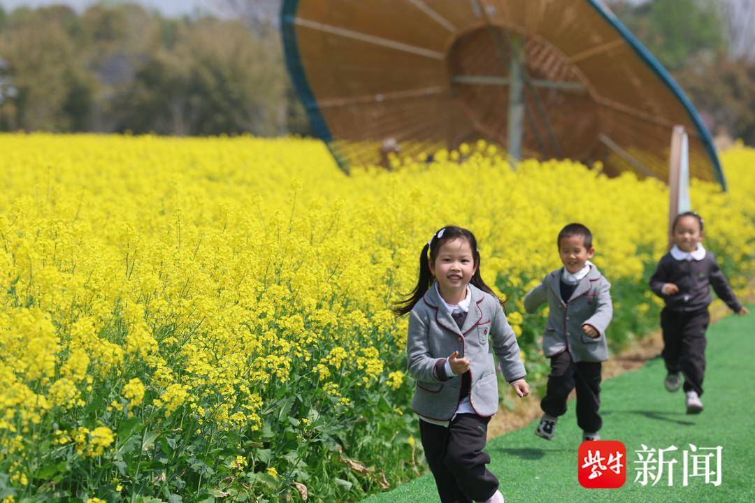 孩子们乘坐观光小火车穿行花田,在常北稻麦乐园体验高空滑梯,在油菜花海内写生画画……4月2日上午,来自张家港新康葩百桥幼儿园的80余名小朋友来到张家港市常阴沙现代农业示范园区开启春假之旅。此时园区内油菜花正值盛放,金色花海与二月兰、水杉林交织成景。据悉,常阴沙的油菜花海素有“苏南第一花海”之称,总面积千余亩,每年3至4月进入最佳观赏期。