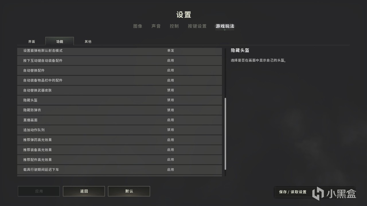 更改设置:打开“游戏玩法”,“功能”里找“隐藏防弹衣”就好了,如果想隐藏“头盔”的话,在它设置的上一格,你们就能看到。