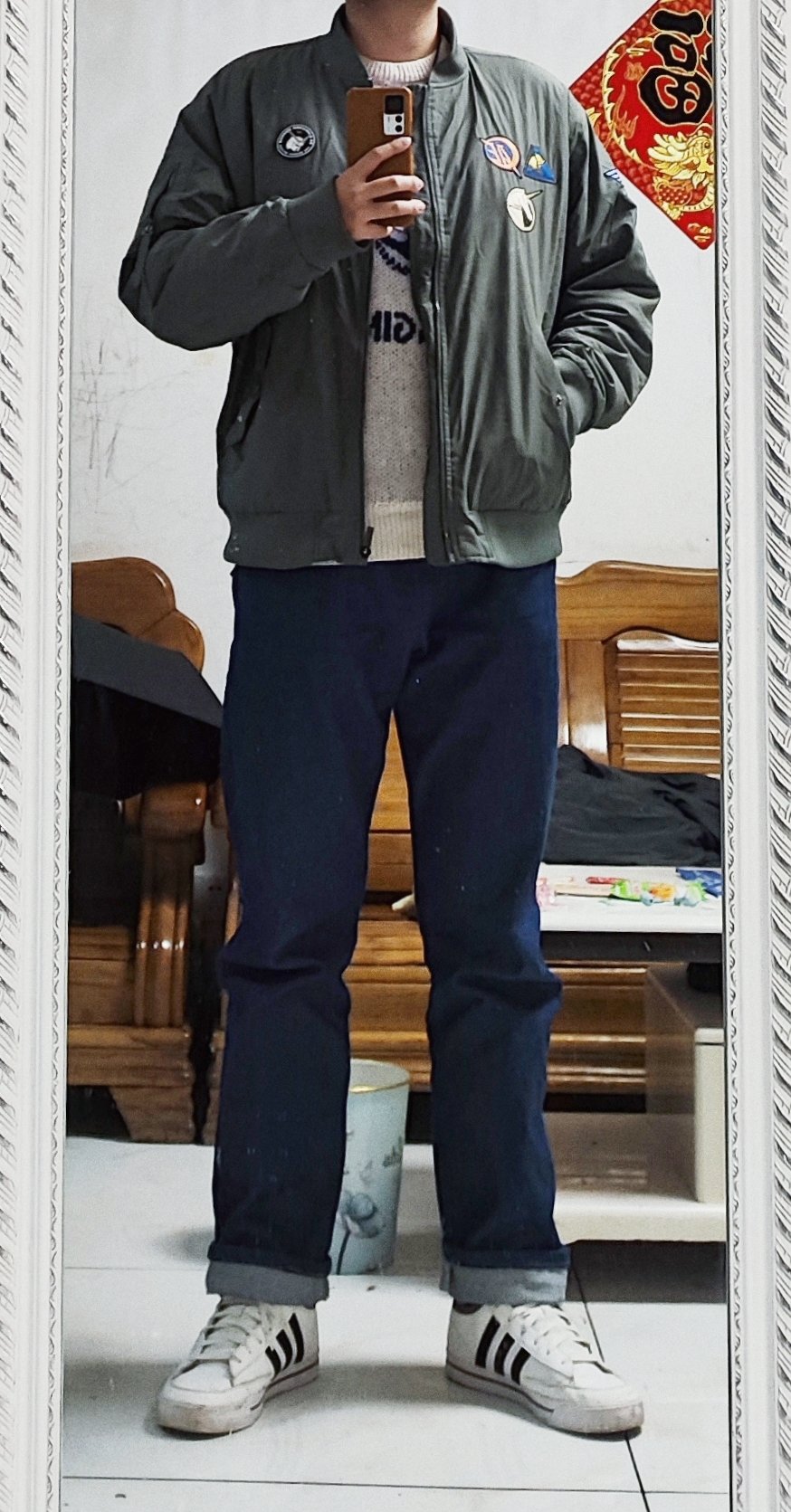 我还有一件飞行员夹克,从高中穿到现在差不多五六年了,是361和高达联名款,现在已经绝版了,我的最爱,质量非常好,偏薄一点,也是加棉的