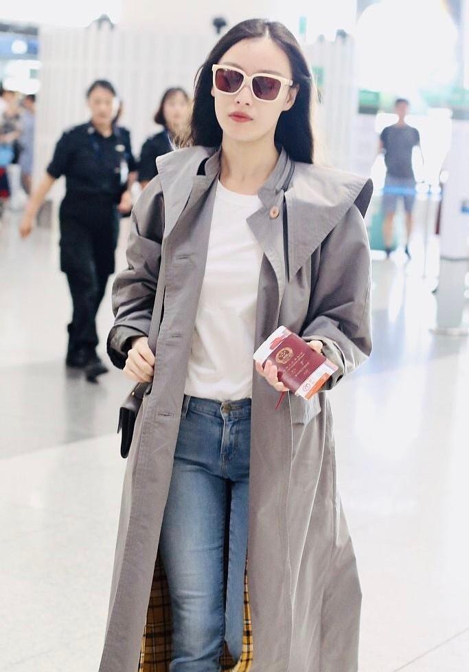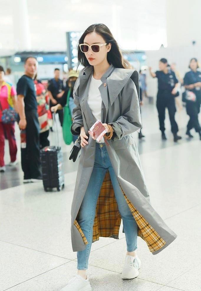 比如,她经常用风衣搭配牛仔裤,但不是普通的阔腿款,而是选择修饰的版型,再配上一双小白鞋,整个人看起来清爽又利落。这种搭配不仅修饰腿型,还能营造出随性自在的氛围,比打底裤有型多了。