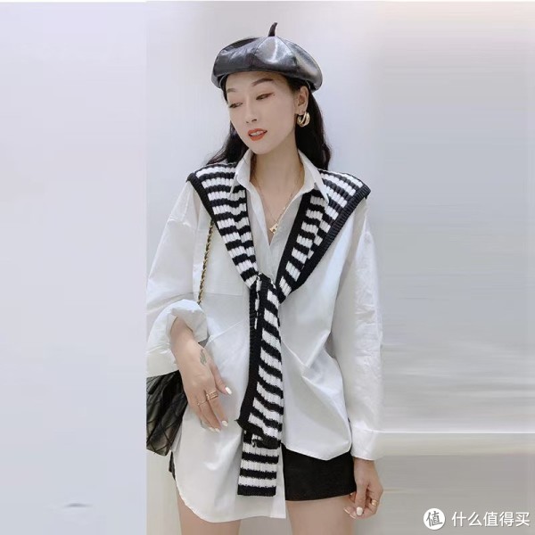 - 周三:白衬衫+针织衫披肩+直筒牛仔裤:把针织衫当作披肩搭在白衬衫上,增加层次感。下身搭配直筒牛仔裤,休闲又不失时尚,适合周三的工作氛围。