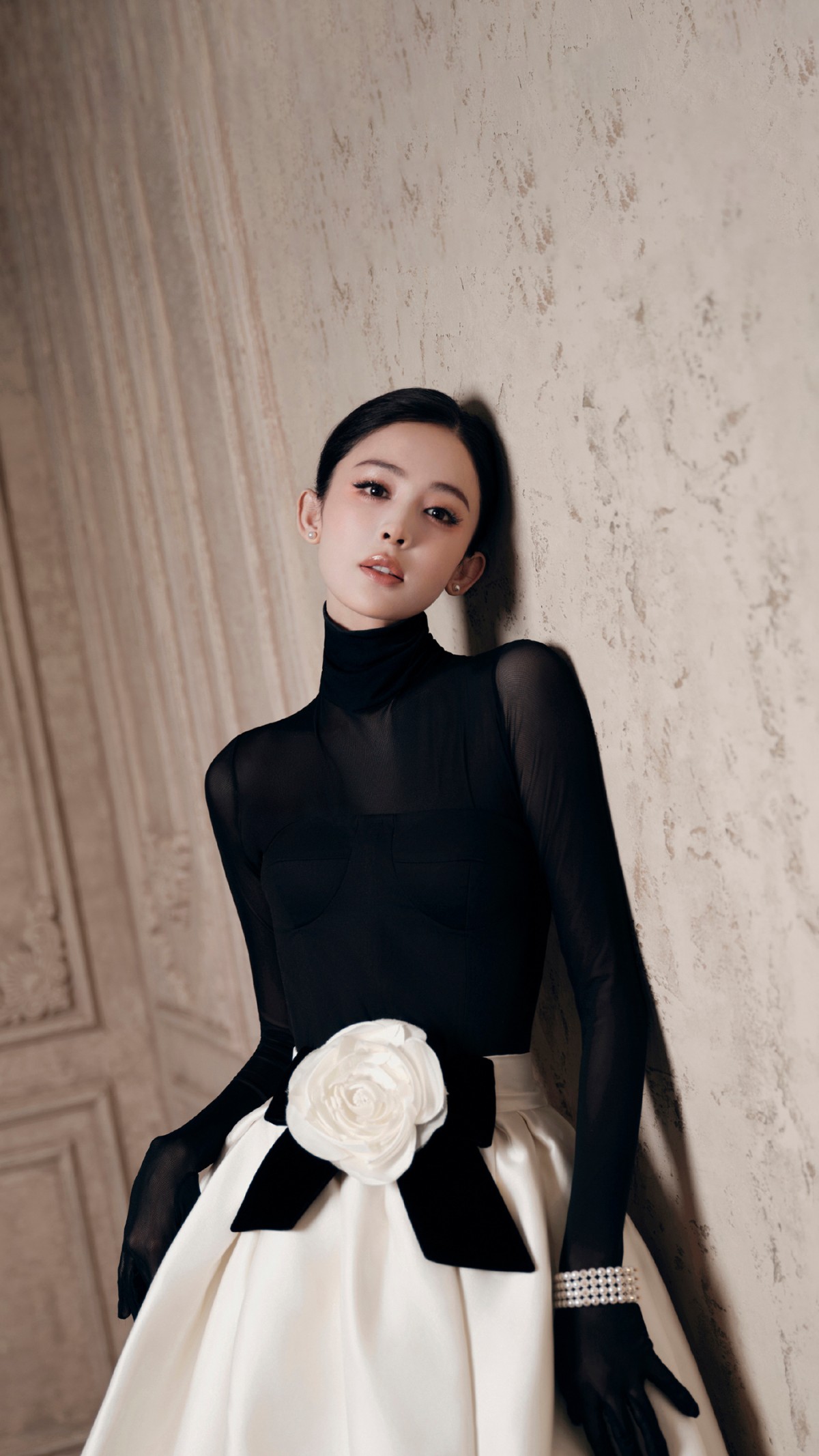 当娜扎身着那套黑白礼服惊艳现身,瞬间成为全场焦点,仿佛从时尚画卷中走出的仙子,将赫本风与现代美学完美糅合,美得让人移不开眼。她上身的黑色透视高领网纱上衣,带着一丝神秘的性感,若隐若现间撩拨着众人的心弦。搭配的米白色缎面裙摆,如同月光洒下的温柔,与黑色上衣形成鲜明对比,又和谐得恰到好处。腰间那朵立体山茶花装饰,宛如点睛之笔,为整体造型增添了几分柔美与浪漫,仿佛是从旧时光里走来的优雅女神,又带着现代的时尚气息。