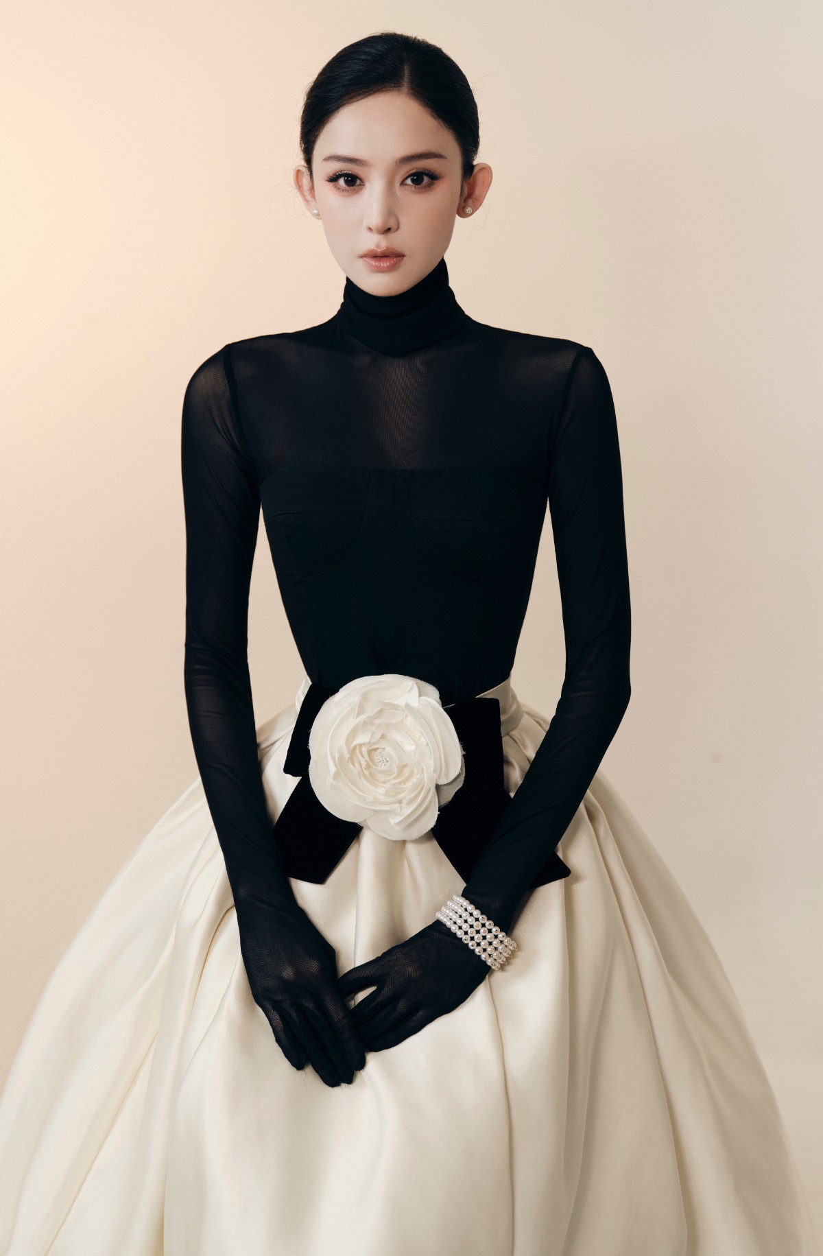 而古力娜扎的个人气质,恰是这套造型的最佳注解。她的五官精致立体,眼神明亮且富有叙事感,冷白皮与黑白配色的适配度堪称天作之合。盘发露出的天鹅颈与清晰下颌线,将高领设计的优势彻底释放;每一次抬手间,珍珠腕饰的光泽与肌肤交相辉映,那份从容自信,让高级感从抽象概念具象为穿搭的每一寸肌理、每一个姿态。她不是在穿衣服,而是让衣服成为了自身气质的延伸,在经典造型的框架里,活出了独属于娜扎的摩登风骨。