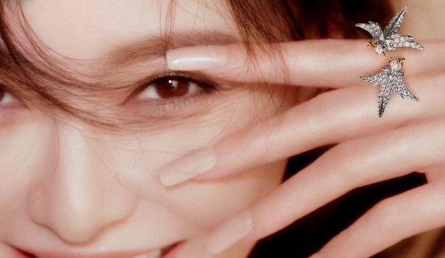 她手上的美甲换成了奶白色,手指上戴着镶钻的叶子形状戒指。