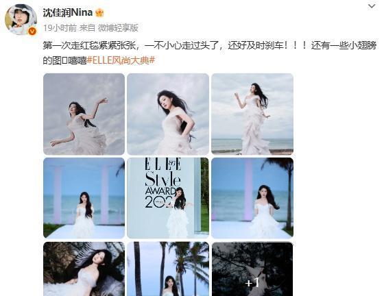 此前,沈佳润还发文称:第一次走红毯紧紧张张,一不小心走过头了,还好及时刹车!!!还有一些小翅膀的图~嘻嘻