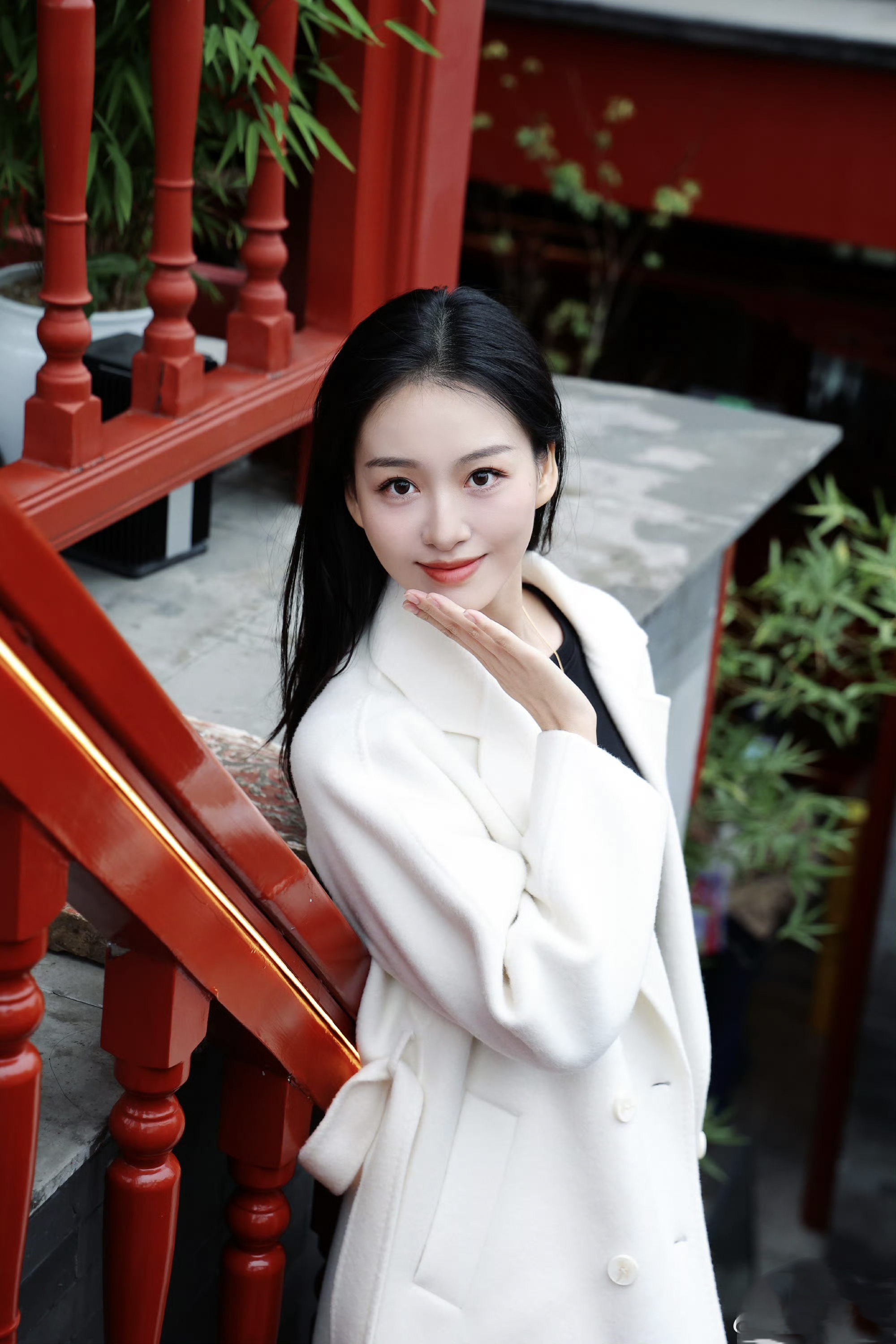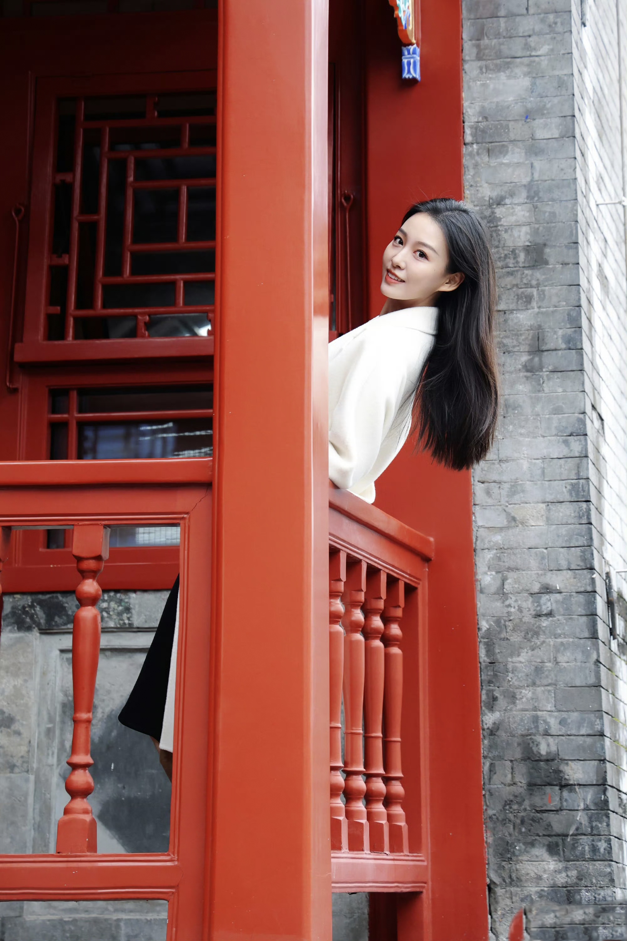 刘璇的美,不止于穿搭与环境的相得益彰,更在于她由内而外散发的自信与从容。她的笑容,如冬日暖阳,明媚而不刺眼;她的眼神,清澈又充满故事感,每一次看向镜头,都像是在与观者进行一场无声的交流。她懂得如何在传统的语境里展现现代的时尚,也懂得如何用时尚的语言去解读传统的韵味。这种对自我风格的精准把握,对文化与时尚的双重理解,让她在这片古意盎然的天地里,活成了一道独特的风景线。