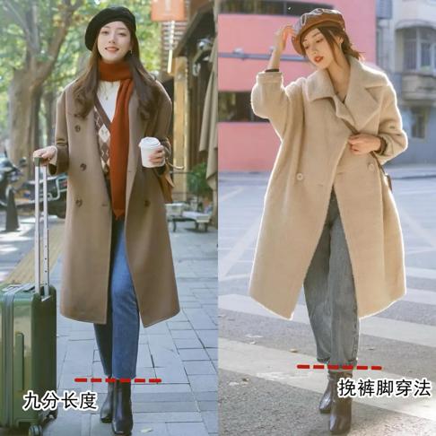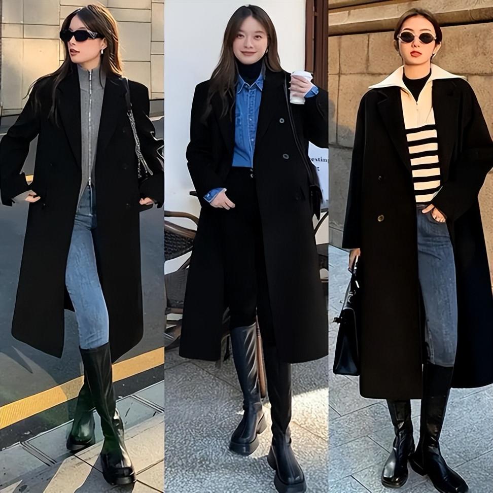 还可以通过“上下宽窄对比”突出身形优势,毕竟秋冬穿搭常离不开厚实的上衣,比如宽松的廓形大衣、慵懒的长款毛衣。此时下身若搭配修身小脚牛仔裤与切尔西靴,宽松上衣与紧身裤的对比能巧妙衬托出腿部纤细,弱化上衣的臃肿感。