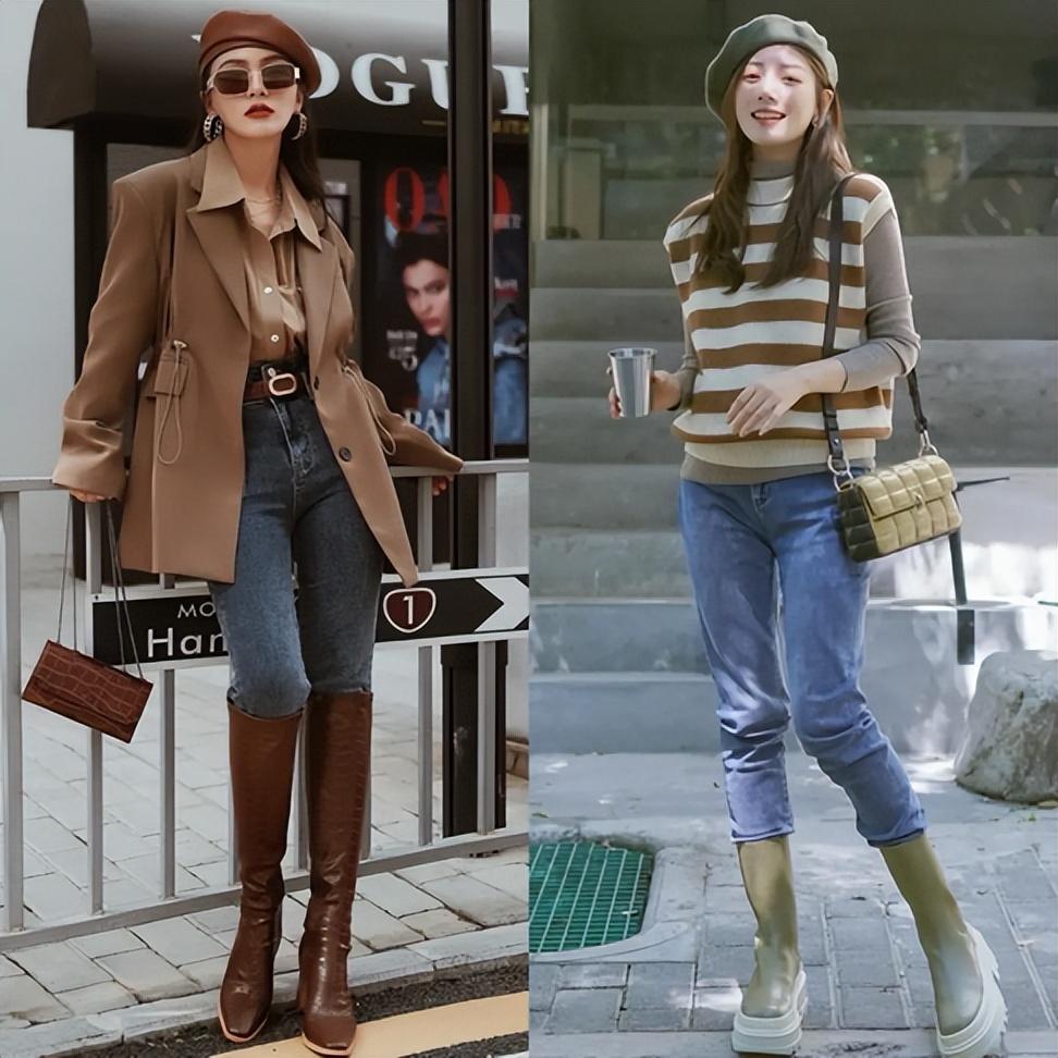 靴子的挑选则要重点关注靴筒与腿型的适配度,不同腿型适合的靴款各有讲究,比如烟筒靴版型利落,不挑腿型,无论是纤细腿还是微胖腿都能轻松驾驭,日常搭配直筒牛仔裤便很显气场。