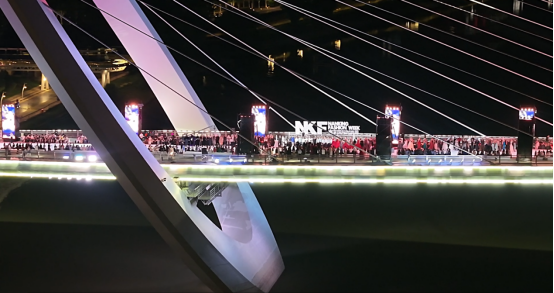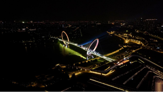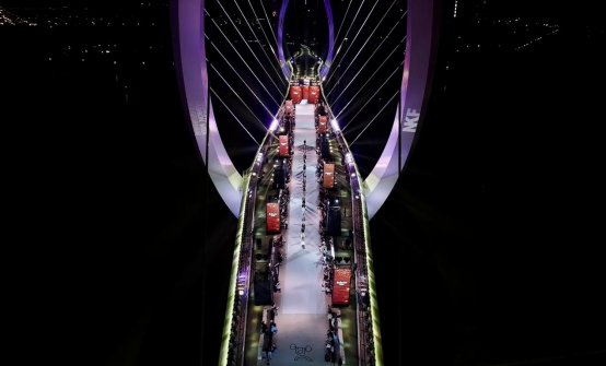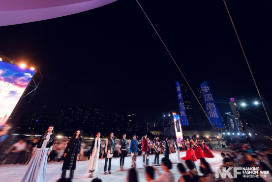 当晚,南京眼创新性地化身为超未来感T台,依托独特的建筑景观与城市天际线,打造出融合自然、人文与时尚的户外秀场。在备受瞩目的开幕大秀中,著名金顶奖设计师张肇达与马克华菲的联名系列华东首秀在此举行,120位模特在华灯璀璨的步行桥上同步走秀。长江的波涛成为最美妙的背景音乐,南京眼的宏伟架构变身最壮观的秀场装置,见证着时尚与建筑的完美融合。