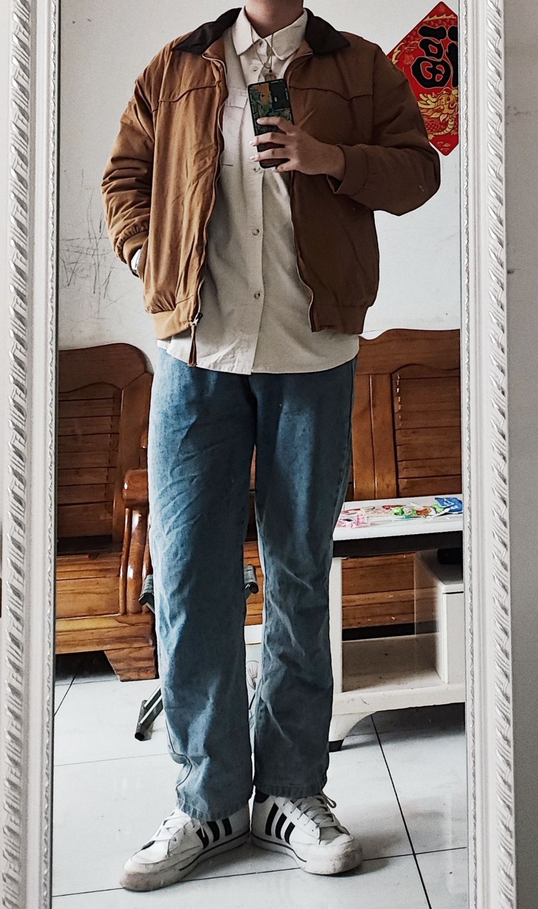 我还有一件飞行员夹克,从高中穿到现在差不多五六年了,是361和高达联名款,现在已经绝版了,我的最爱,质量非常好,偏薄一点,也是加棉的