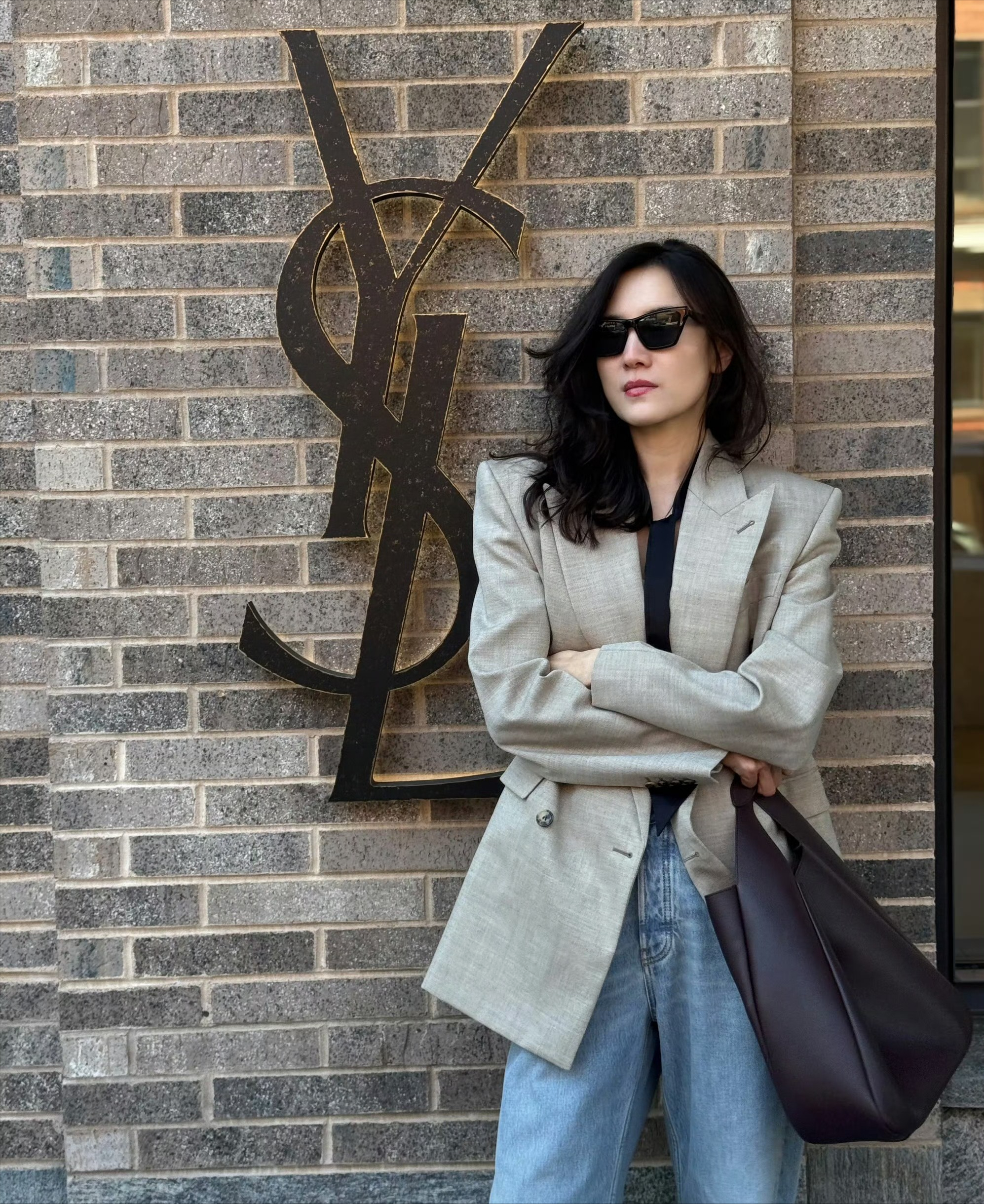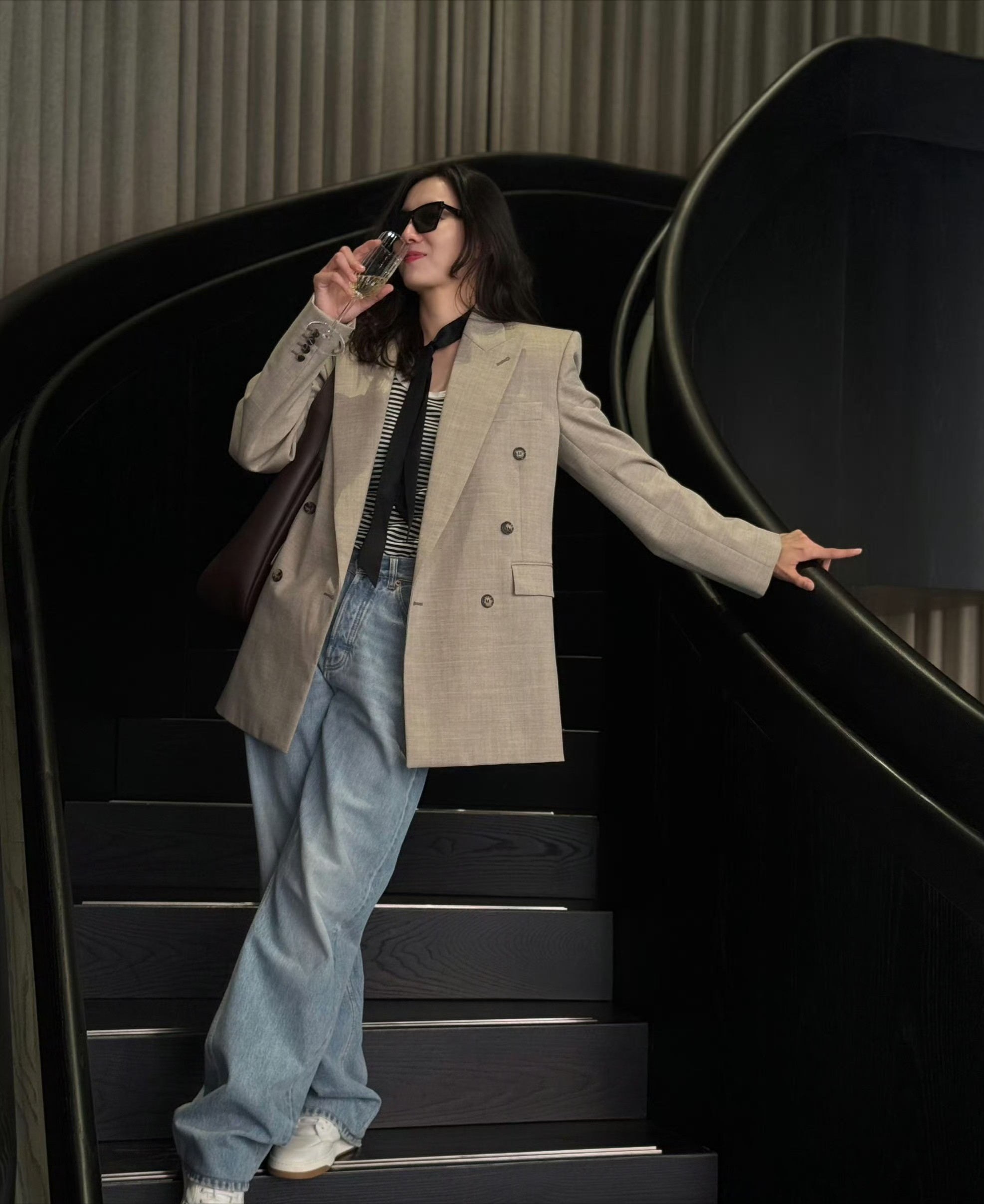 一身宽松的搭配,往往在凸显随性休闲。就像44岁宋佳身上的这件棱廓感强的宽松版型西装,搭配着阔腿牛仔裤,是不是少了几分正式,多了几分随性呢。
