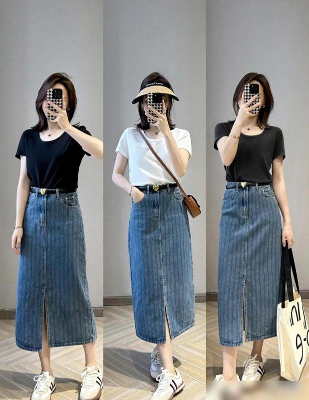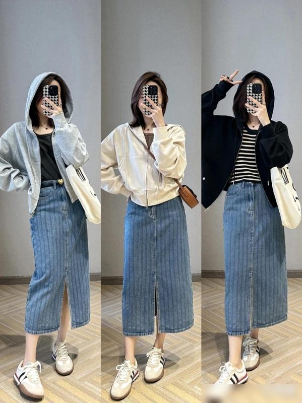 推荐款式①:牛仔直筒开叉裙,时髦显瘦