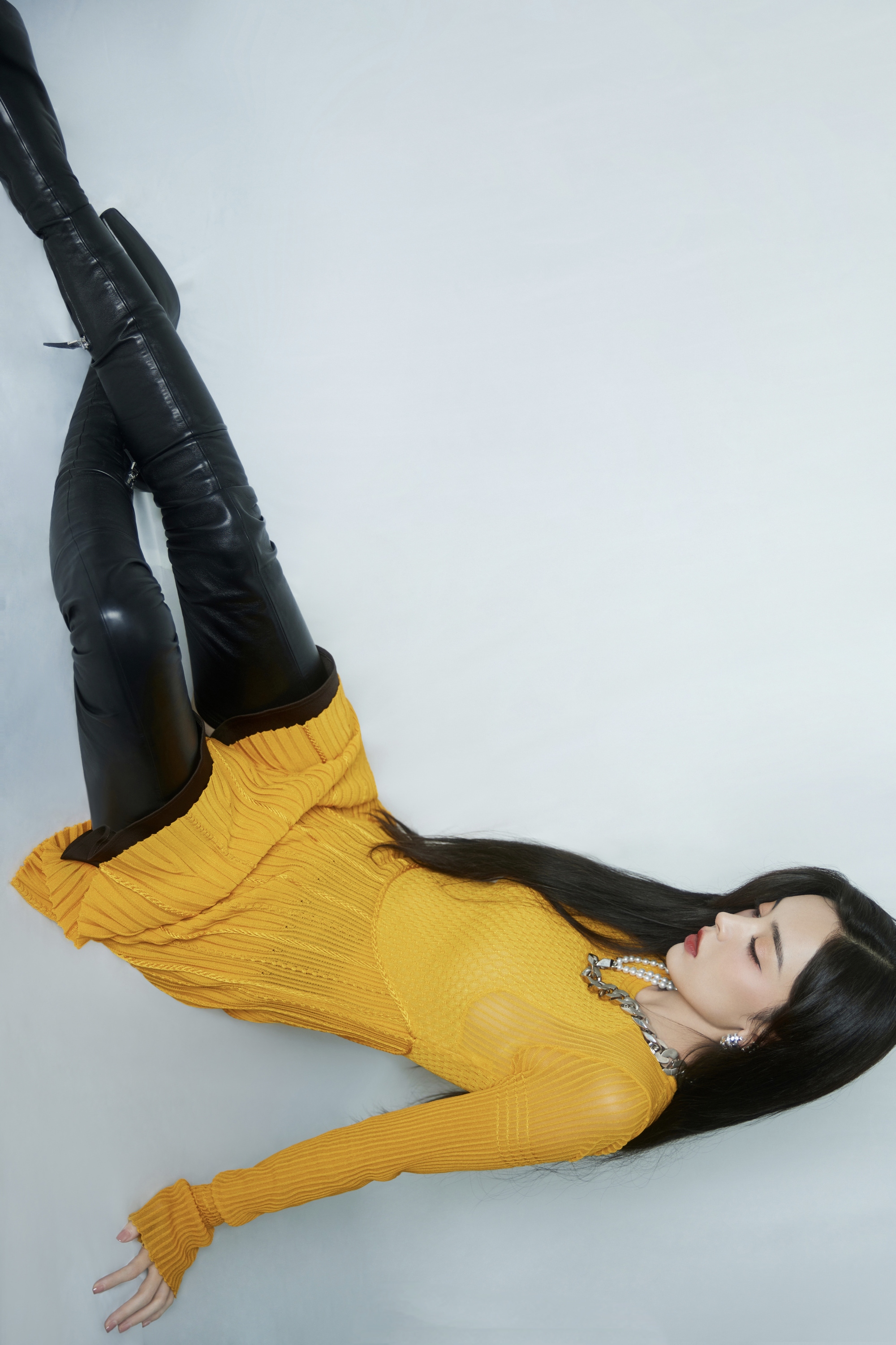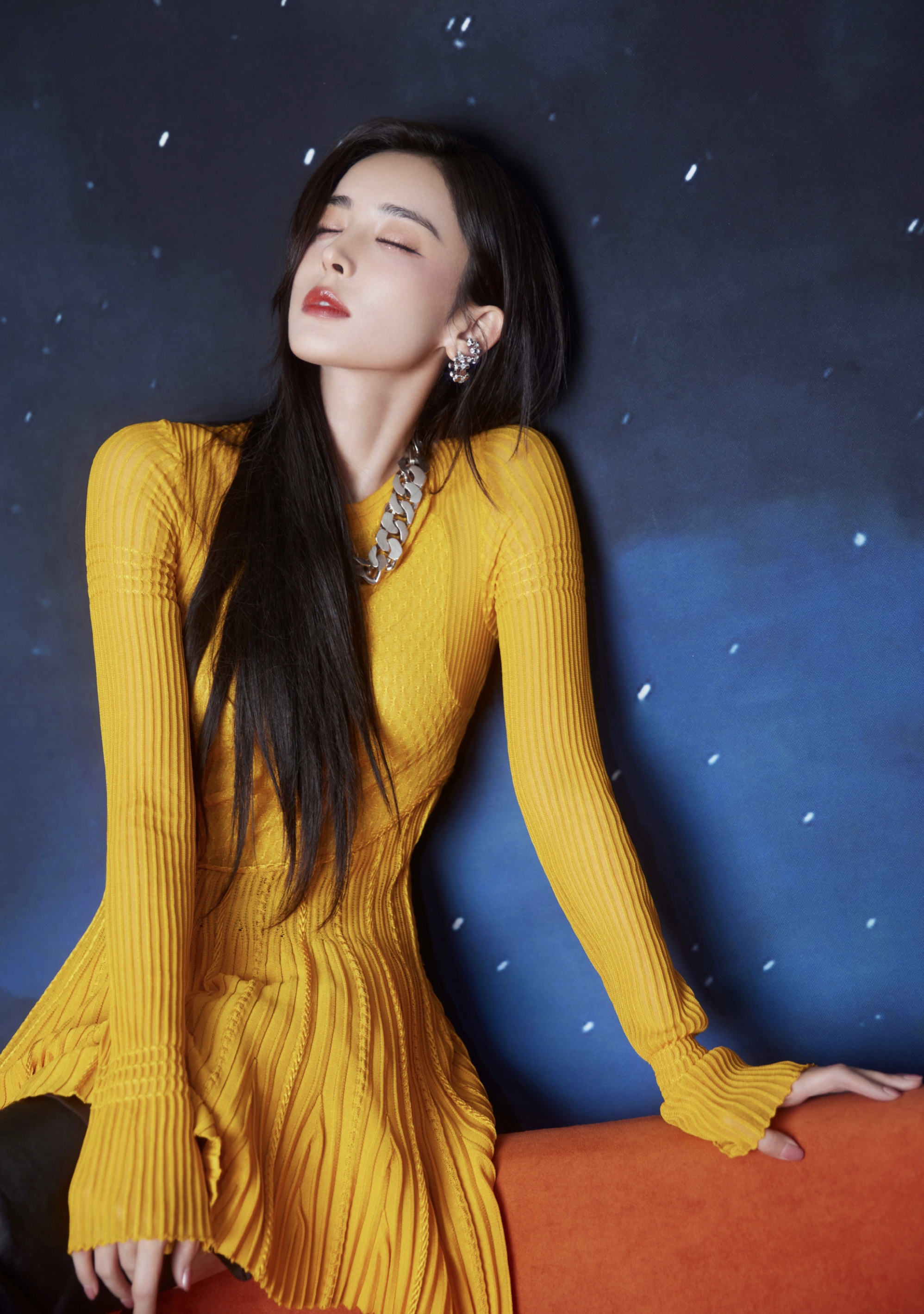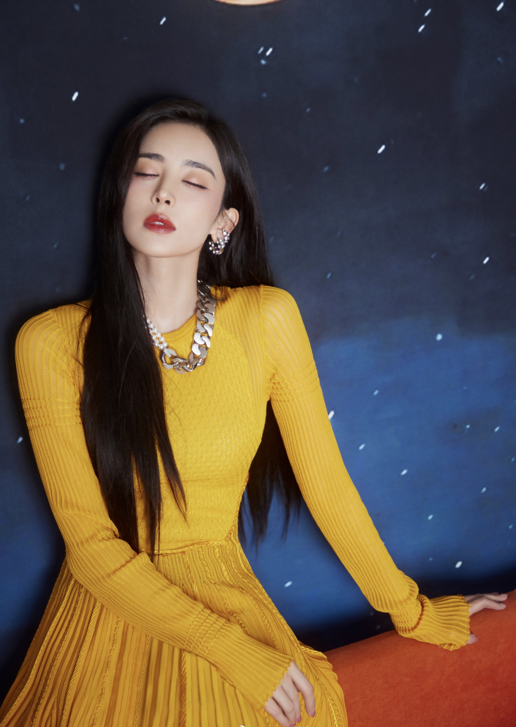 在这组以星空为背景的大片里,娜扎的表现力堪称“行走的时尚模板”。或直视镜头,眼神明亮而坚定,将明黄色的活力尽数释放;或轻闭双眼,姿态慵懒又松弛,在针织裙的柔线下,流露着不动声色的性感;或手持毛线球,以充满童趣的道具打破时尚大片的距离感,让造型多了几分鬼马灵动。