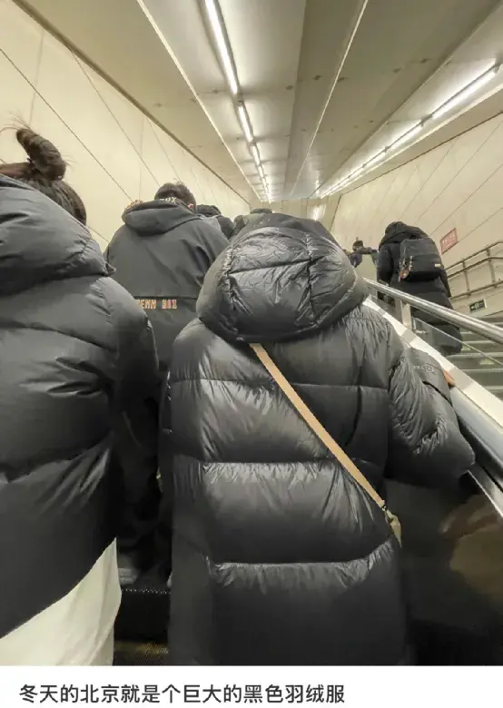 无论街头、地铁、公交,尤其是早晚牛马专列,总会看到迎面走来一群裹得像发面馒头似的黑色羽绒服大军。
