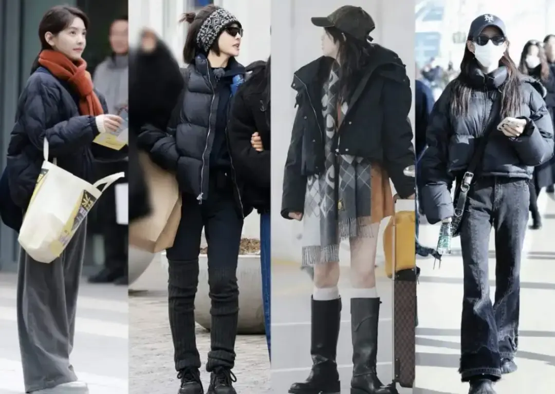 明星们的黑色羽绒服穿搭/图源:小红书@依路穿搭,已获授权