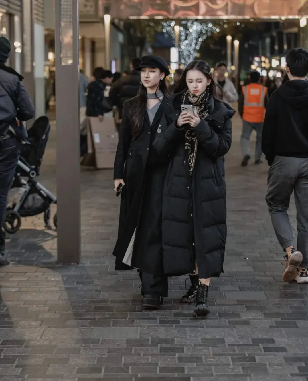 中长款黑色羽绒服搭配牛仔裤、运动鞋,那是“纯血老北京”自己的休闲风OOTD。