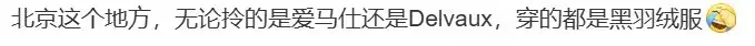 “当你穿着几万块钱的MaxMara羊绒大衣,被北京妖风穿堂而过时,会明白黑羽绒服朴素的智慧。”