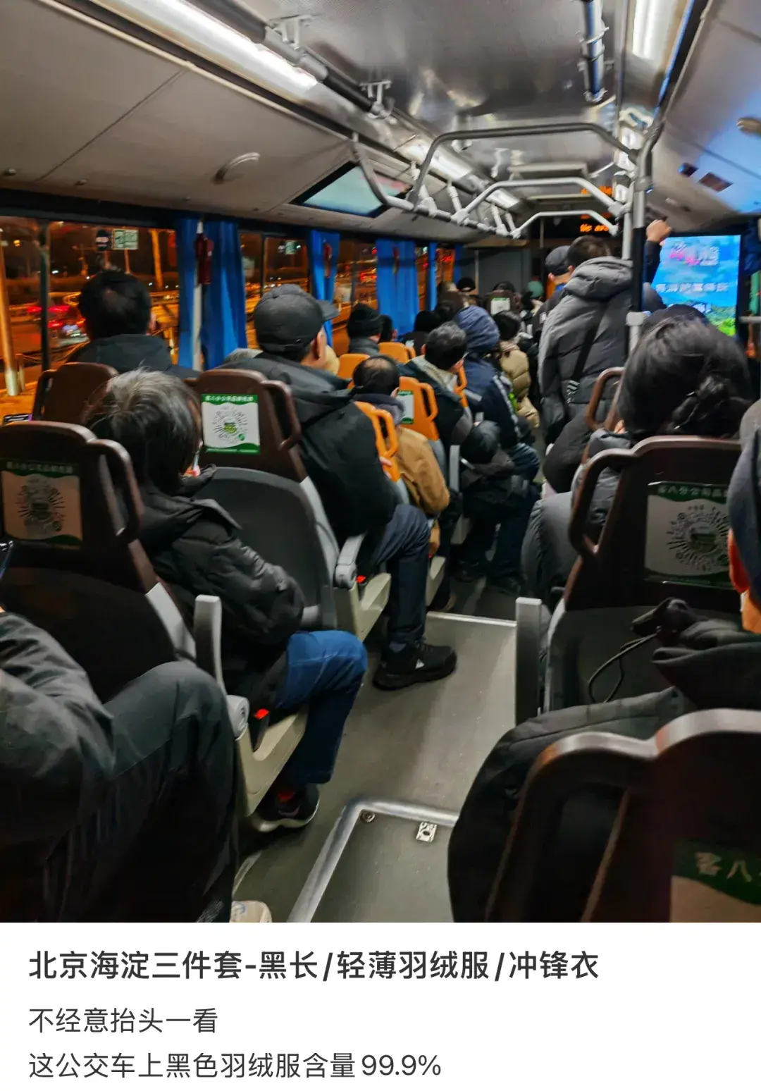 无论街头、地铁、公交,尤其是早晚牛马专列,总会看到迎面走来一群裹得像发面馒头似的黑色羽绒服大军。