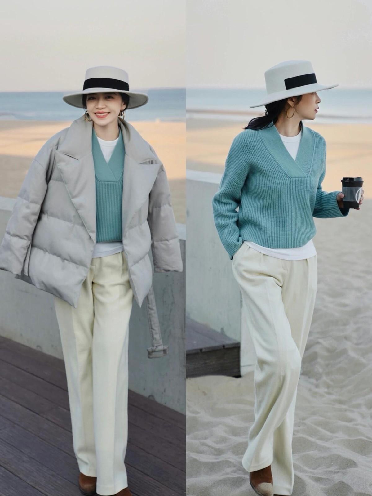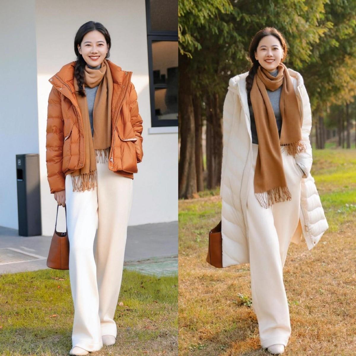 颜色上,姐妹们也可以试试白色系,它凭着“温柔不挑人、显贵不张扬”的特质,成了穿搭圈的“宝藏单品”,既有奶奶裤的宽松舒适,又带着白色的干净通透,打破了秋冬深色系的沉闷,就算是搭配厚重的羽绒服都能穿出松弛又高级的质感。