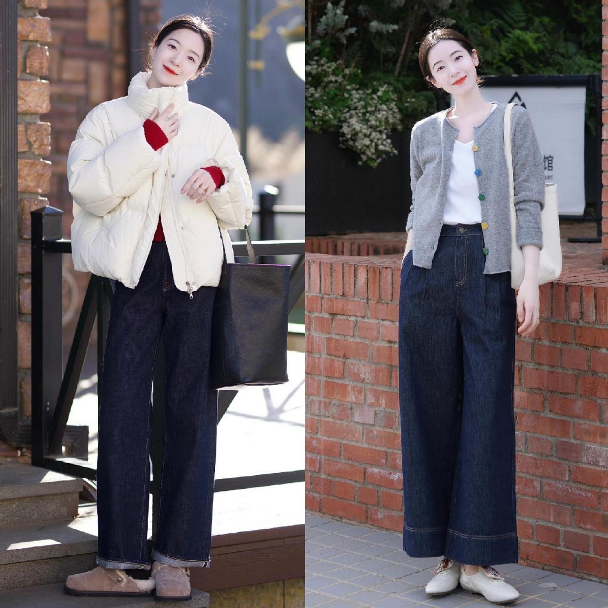 阔腿裤的妙处,在于它能把“松弛”和“气场”平衡得刚好。今年不用追过于夸张的裤腿,姐妹们去选那种微微宽松、垂坠感好的就够了,西装料或垂顺牛仔布都是好选择,软塌的面料容易显臃肿,而挺括又带点垂感的材质,能悄悄撑起轮廓,显得人利落又大气。