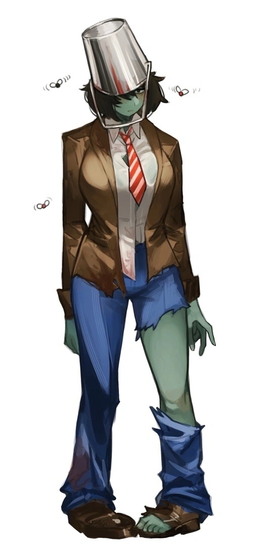 从穿搭来讲,它身着破损的棕色外套、白色内搭与红纹领带,下搭蓝色破洞裤,还有棕色鞋子,整体呈现出破败的复古风格。这种穿搭既契合僵尸“腐朽”的设定,又通过领带等元素增添了一丝荒诞的“正式感”,很有辨识度,也生动地体现出僵尸世界的独特氛围。