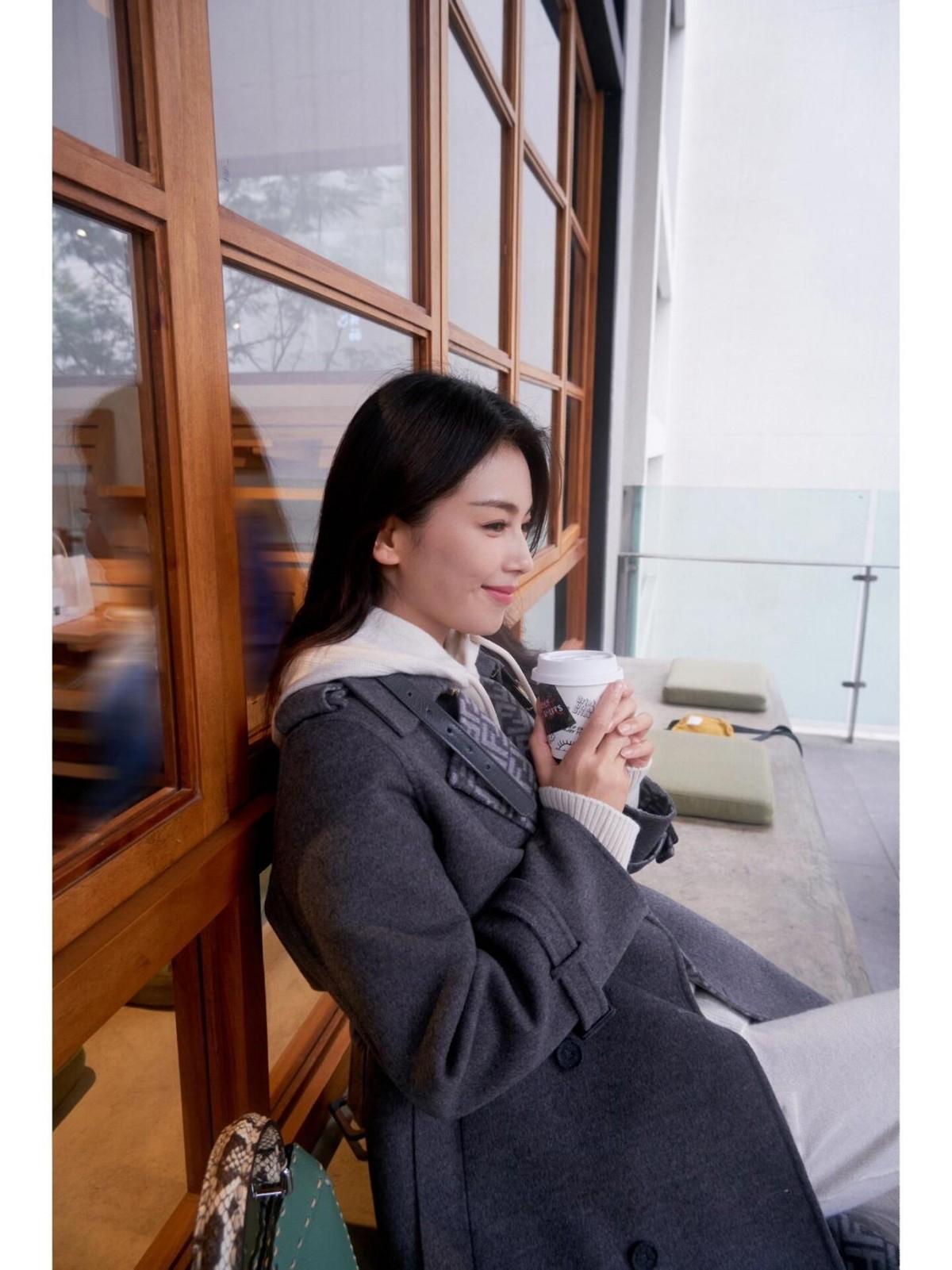 接着来看这一身灰色大衣的搭配,刘涛这一件大衣是毛呢质地,自带贵气感,大翻领设计更是极其大气,不会像基础款那样单调。搭配的时候,她没配衬衫和打底裤,反而搭了连帽卫衣+白色休闲裤,这种“正装外套+运动内搭”的混搭,刚好中和了大衣的严肃感,显得随性又时髦。
