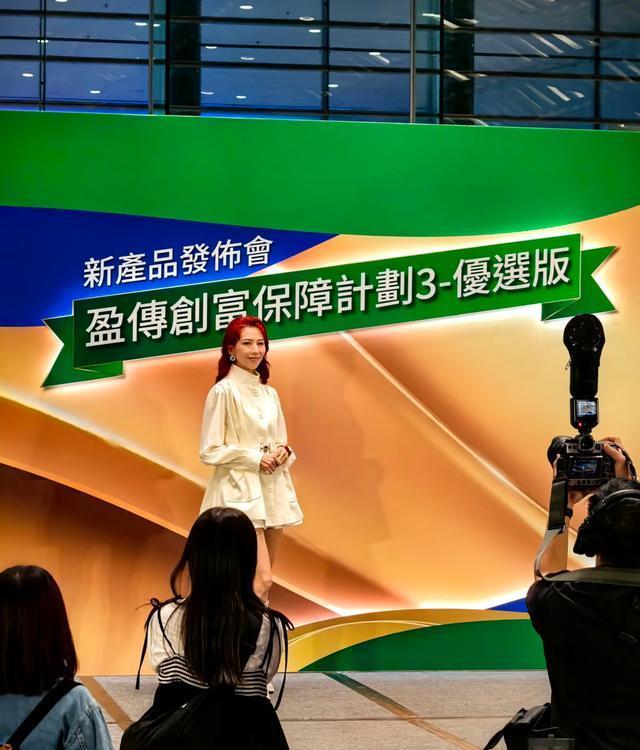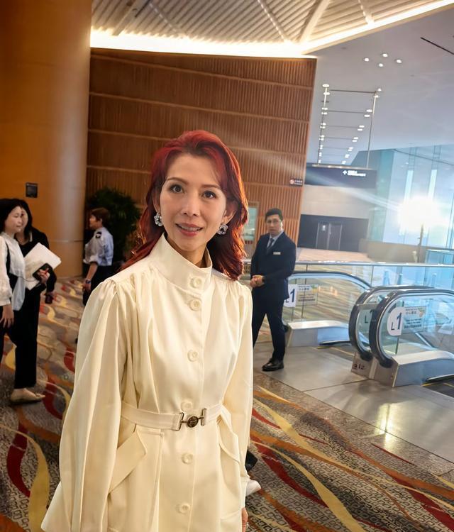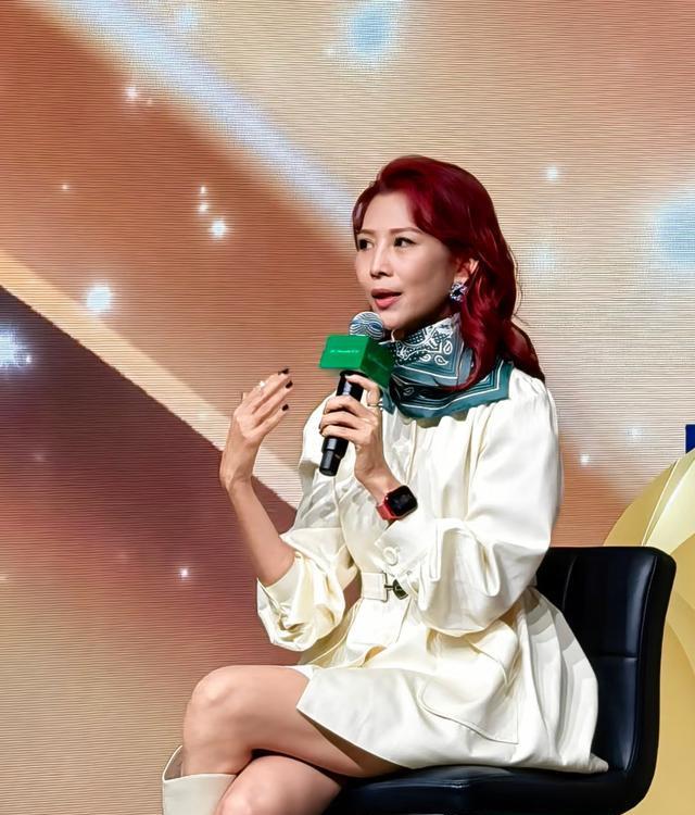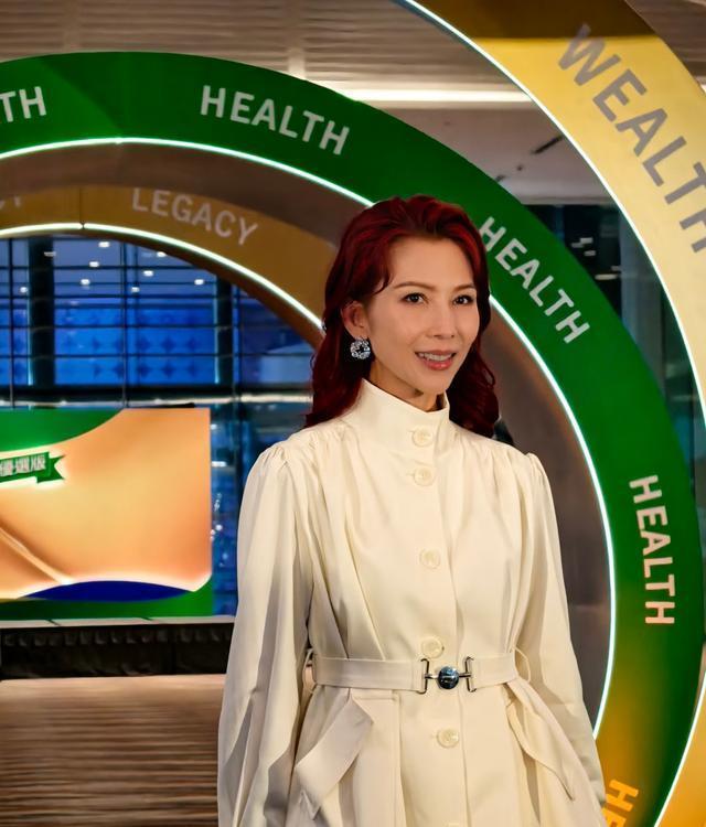 没想到,52岁的蔡少芬依然是芳华绝代。在新品发布会上,看到了穿着白色商务短裙的蔡少芬。一头红色卷发,系着绿色丝巾,戴着细闪的耳环,优雅贵气。