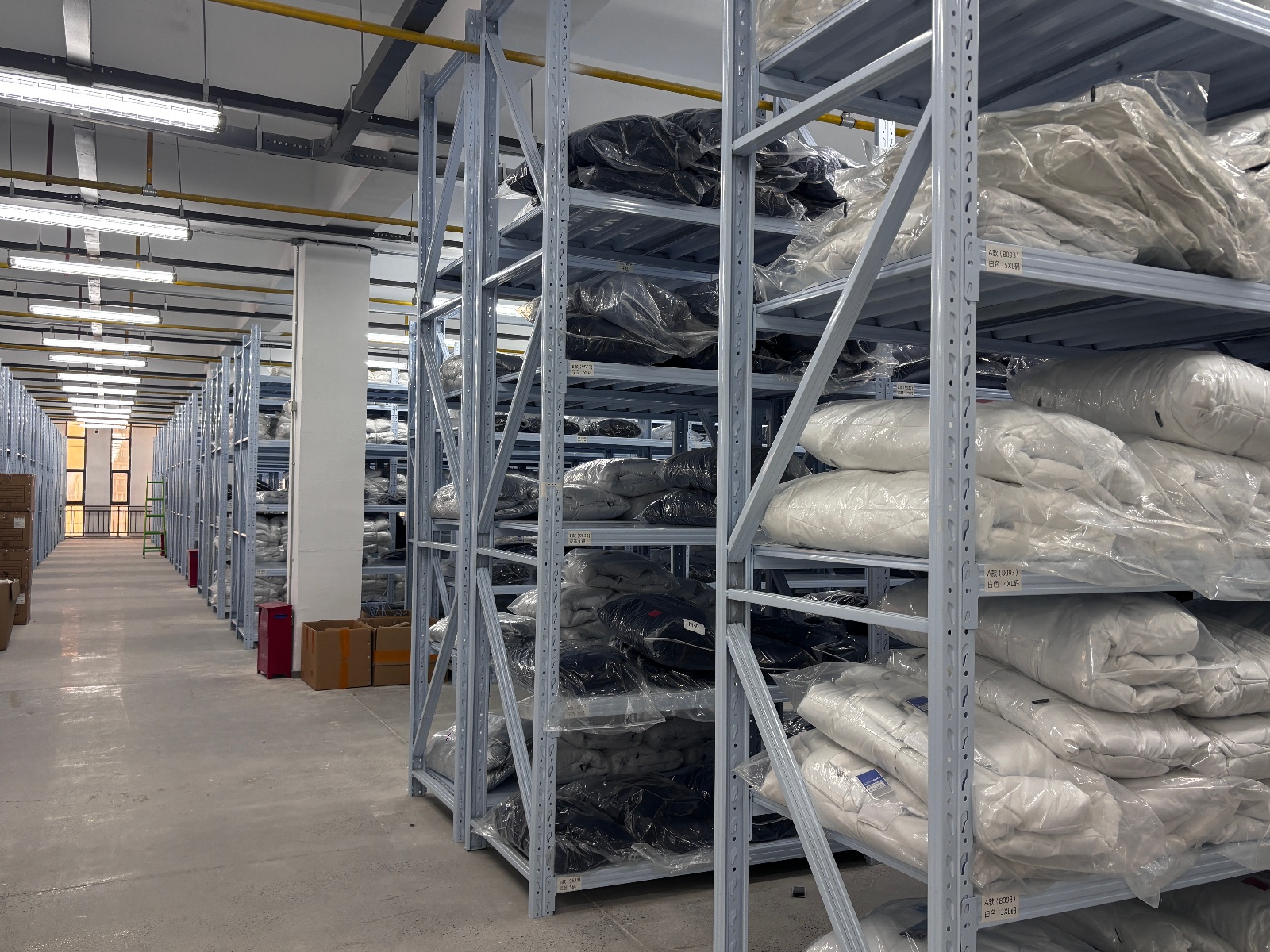 据了解,该公司在福建设有总仓,库存量达三四十万件。工厂通常采取“反季生产”模式,即在夏季生产冬季所需的棉袄、冲锋衣和大衣,在冬季则生产春夏季的货品,如短袖、卫衣。目前工厂里的库存,正是总仓在夏季时调运过来的。