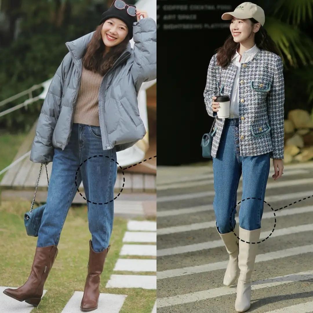 想要将“牛仔裤+靴子”穿出理想效果,选对单品是第一步,牛仔裤的选择要优先关注腰部设计,高腰款无疑是最佳搭档。低腰或中腰牛仔裤容易暴露腰腹赘肉,还会压缩腿部比例,显得人矮胖;而高腰牛仔裤能巧妙提高腰线,让腰、臀、胯的线条自然衔接,视觉上拉长腿部线条,轻松打造“三七分”身材比例。