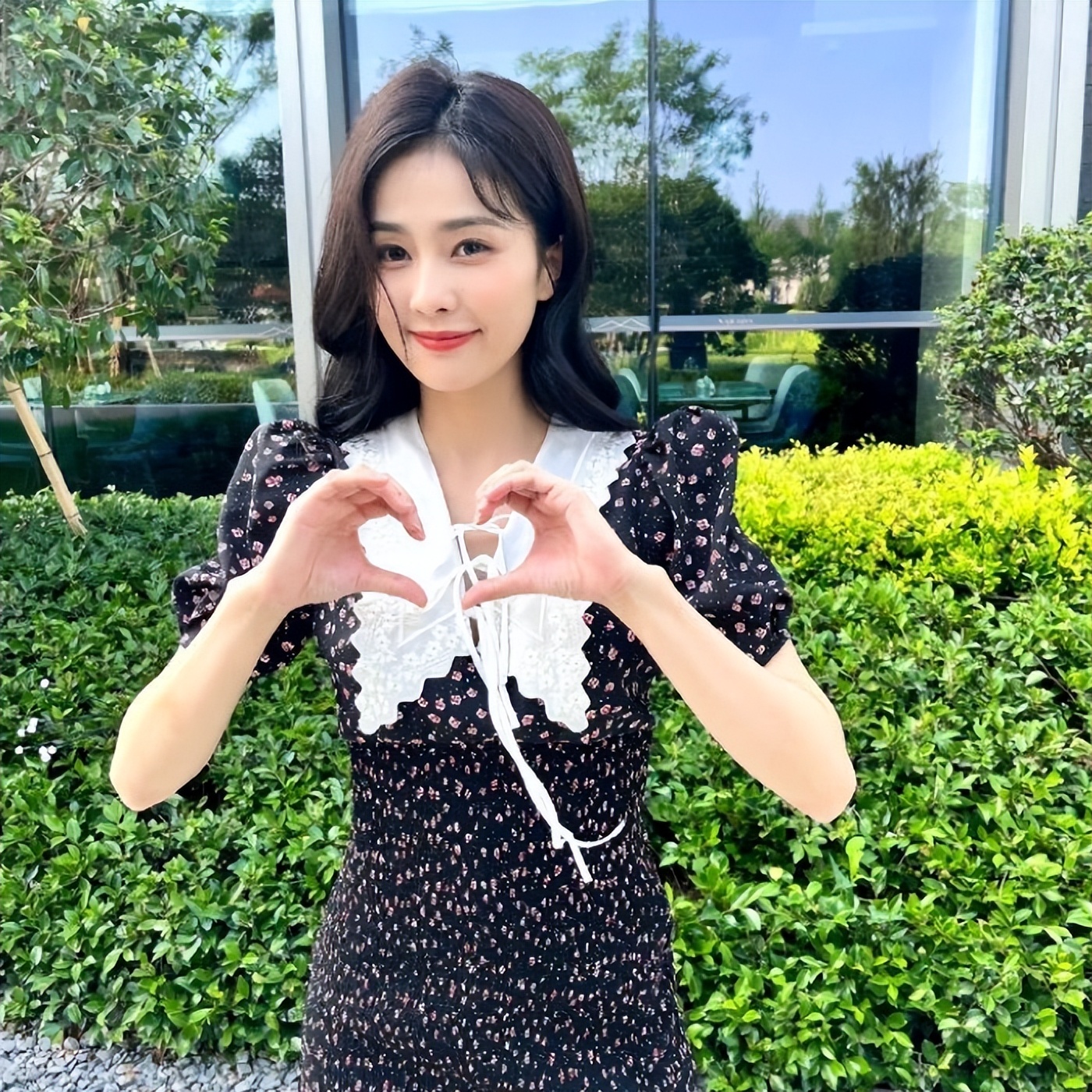 同样是娃娃领的设计,白鹿在《一生一世》活动现场的黑色裙子和娃娃领的搭配看起来就很优雅。