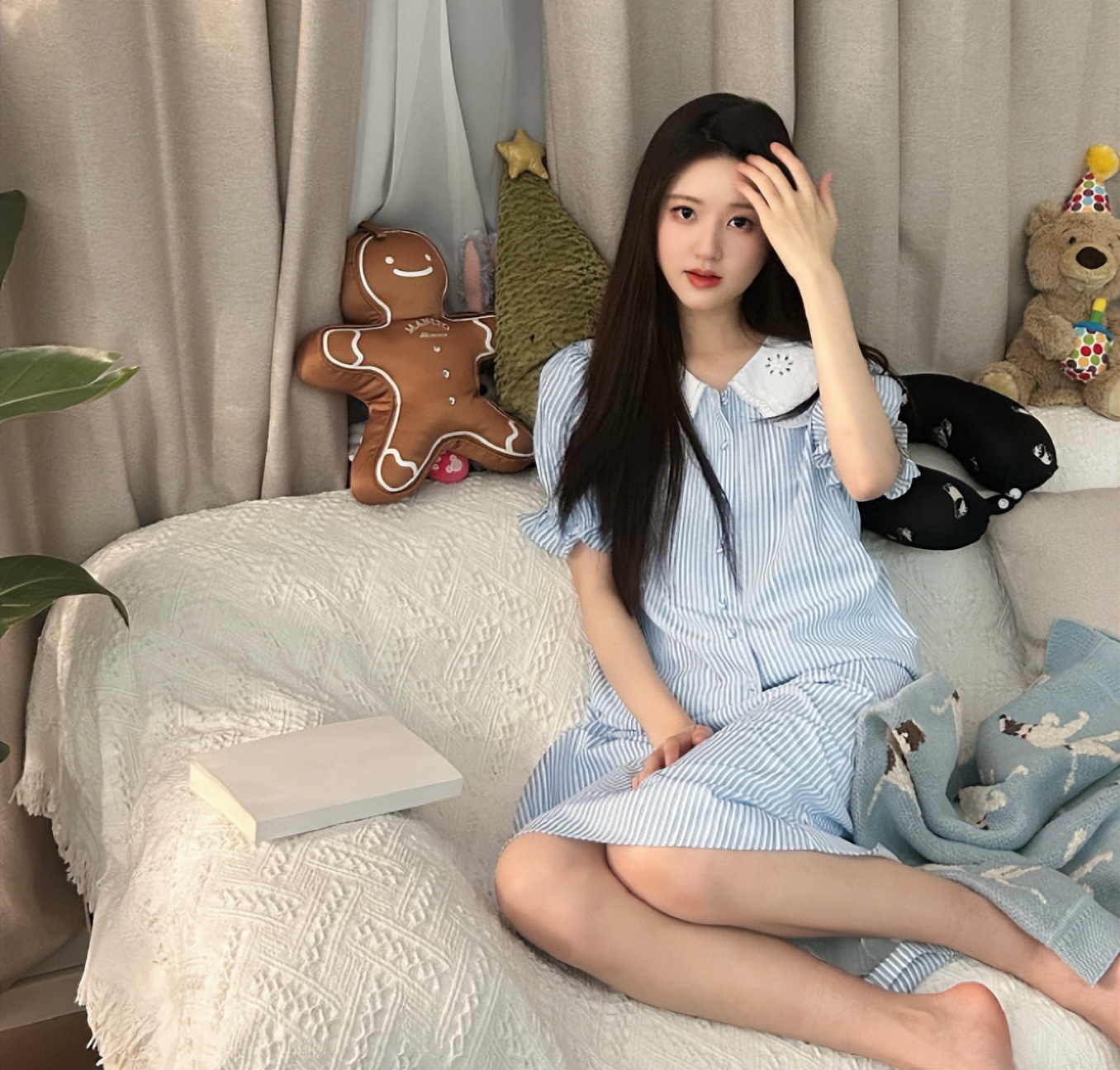赵露思早年的穿搭也很有辨识度,她顶着黑长直的发型搭配娃娃领的蓝色条纹裙子,看起来氧气感十足,完全就是让人眼前一亮的邻家美少女。