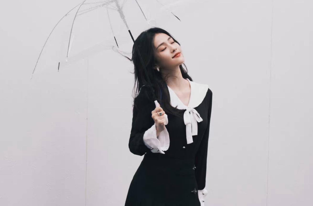 同样是娃娃领的设计,白鹿在《一生一世》活动现场的黑色裙子和娃娃领的搭配看起来就很优雅。