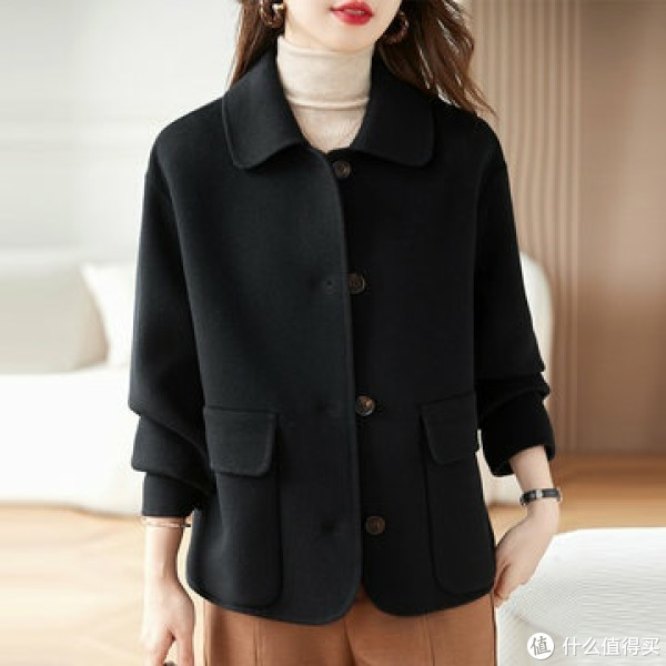 - 上衣:选择一件米白色的高领羊毛衫,柔软的材质能提供良好的保暖效果,高领设计可以护住颈部抵御寒风。外面搭配一件黑色的短款羊毛大衣,H型的版型利落又显瘦,长度到臀部,不卡胯,方便活动。